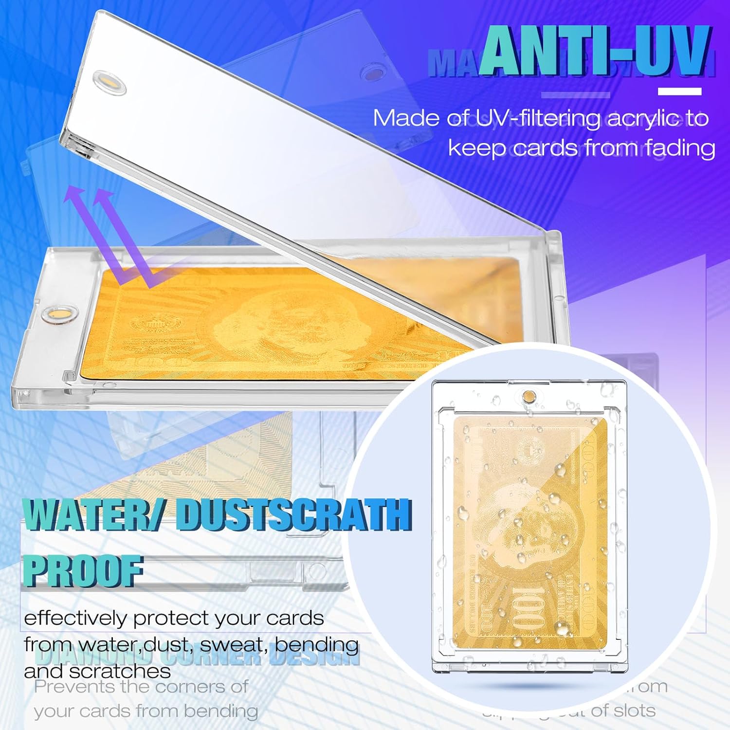 - Enhanced Protection: our sport card holders are crafted from sturdy acrylic and magnets, offering longevity without the risk of breakage or deformation; They are reliable containers that protect your cards from dust, water damage, scratches, and accidental squishing, ensuring your cards stay in good condition