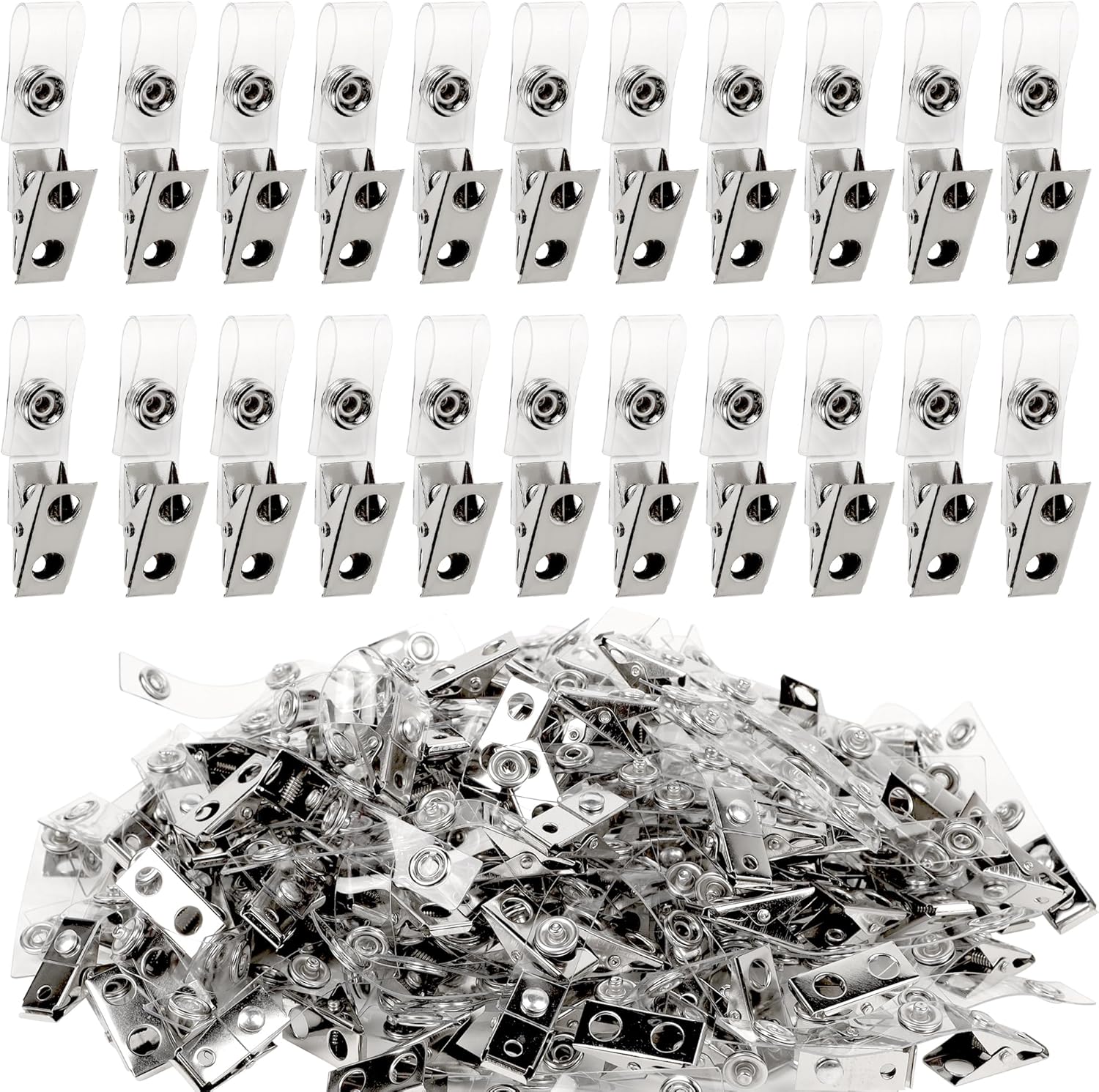 Happy Trees 150pc Metal Badge Clips with Strap Clear ID Strap Clip Adapter