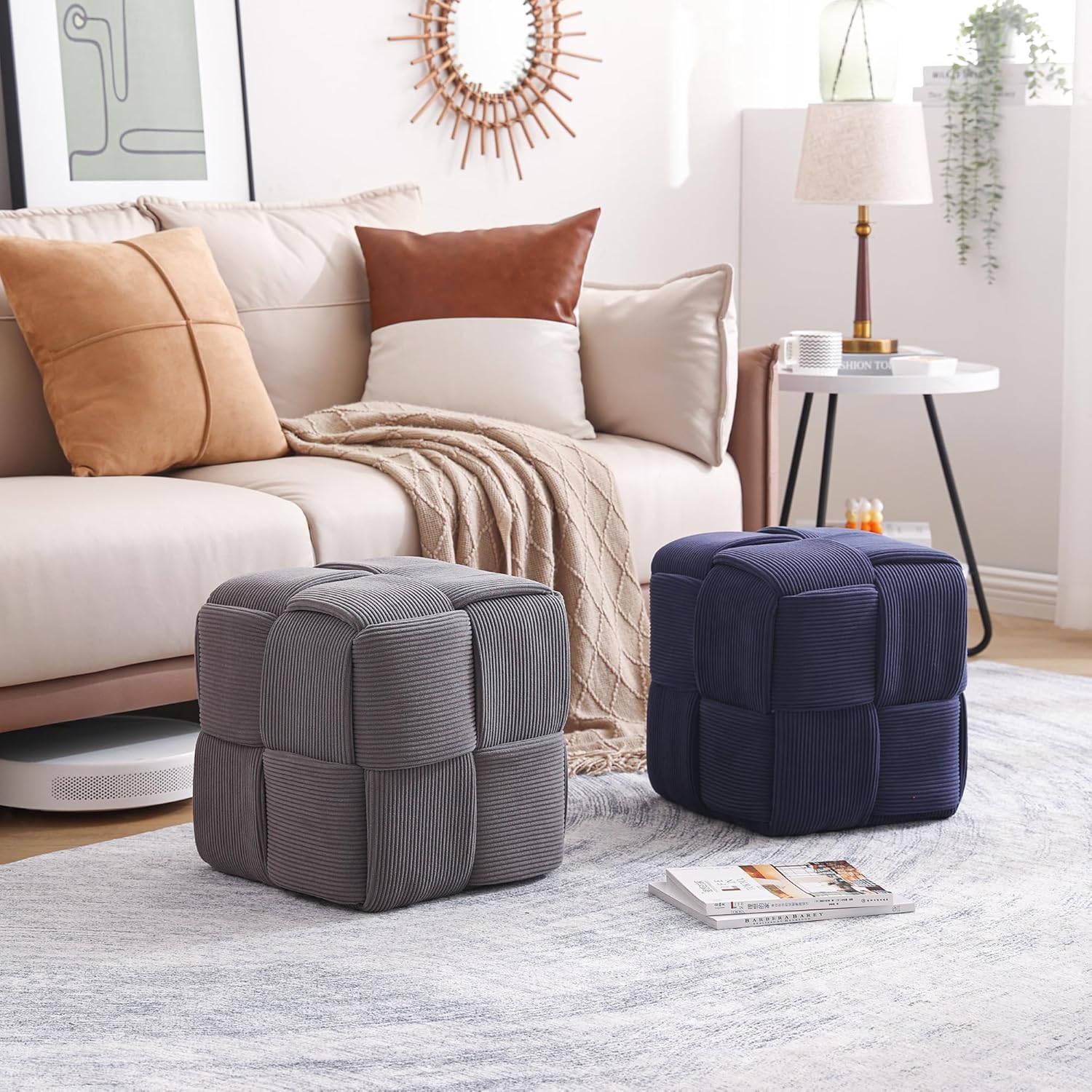 Ottoman Foot Rest Soft and Comfortable Ottoman Square Corduroy Woven Design Sofa Stool (Blue)