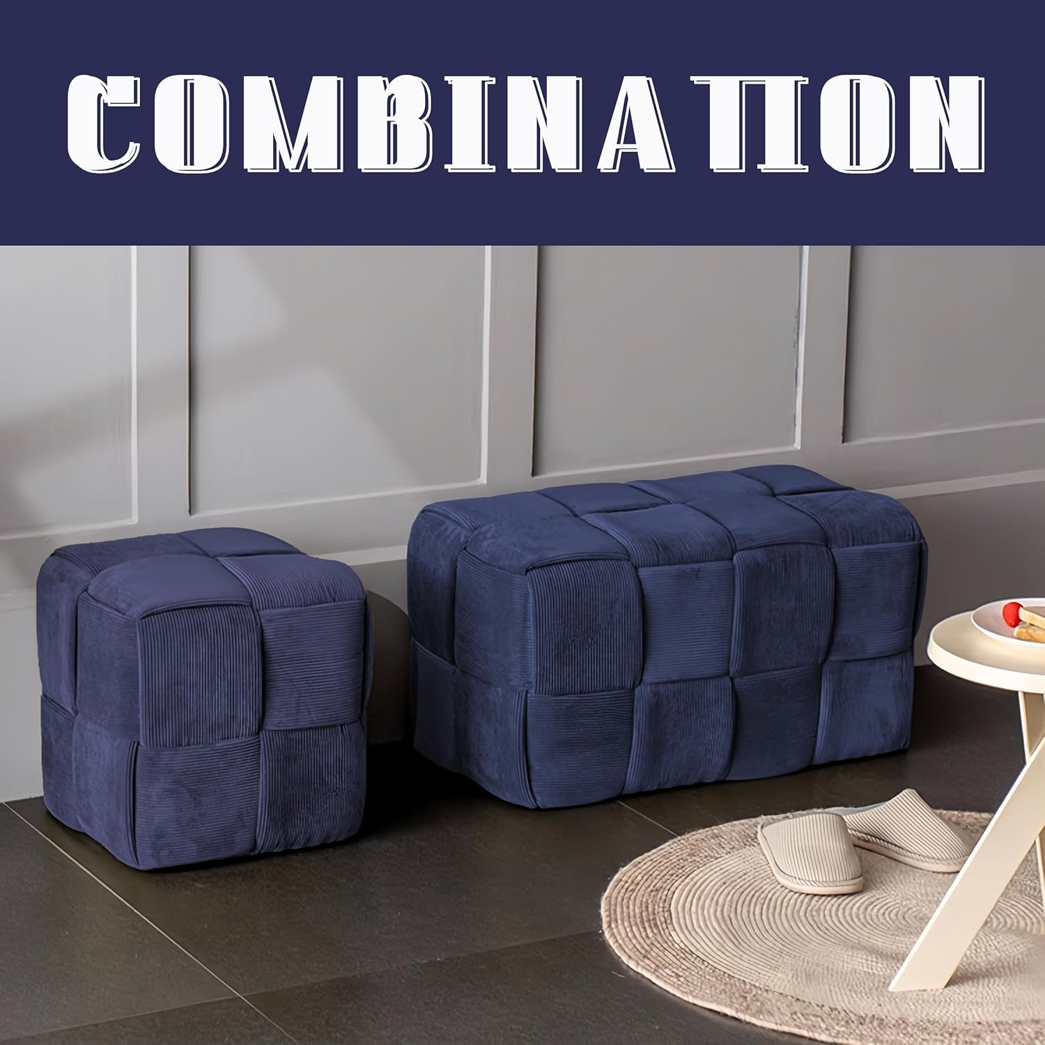 Ottoman Foot Rest Soft and Comfortable Ottoman Square Corduroy Woven Design Sofa Stool (Blue-L)