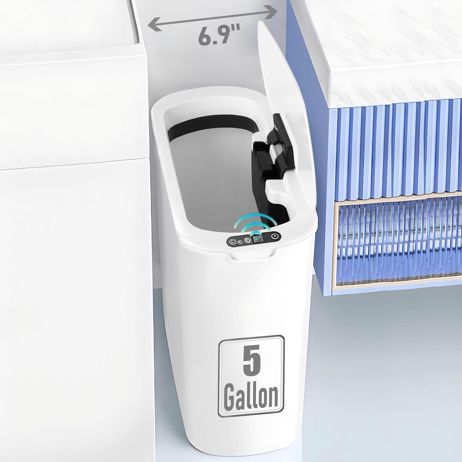 5 Gallon Motion Senor Bathroom Trash Can with Lid, Automatic Garbage Can Touchless, Smart Plastic Waste Basket for Narrow Spaces, Bathroom, Office, Bedroom, Living Room (White)