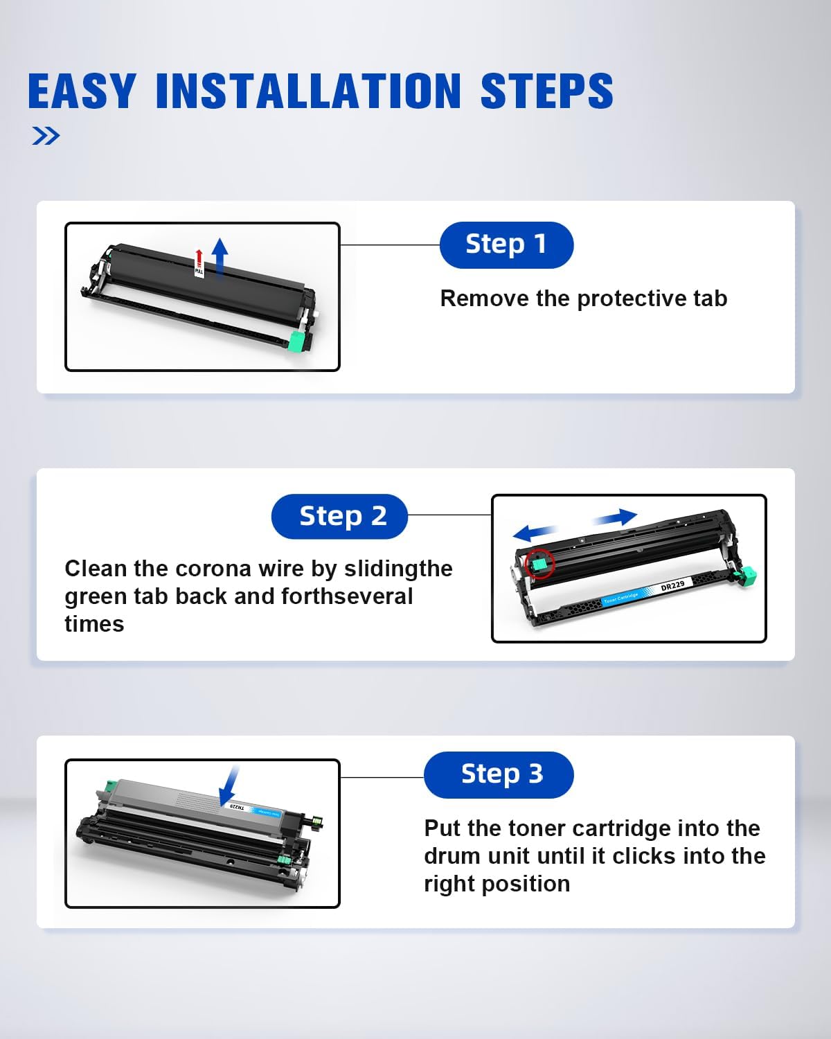 - Page Yield:DR-229 DR229CL drum unit is up to 3000 pages per toner cartridge at 5% coverage of A4 paper