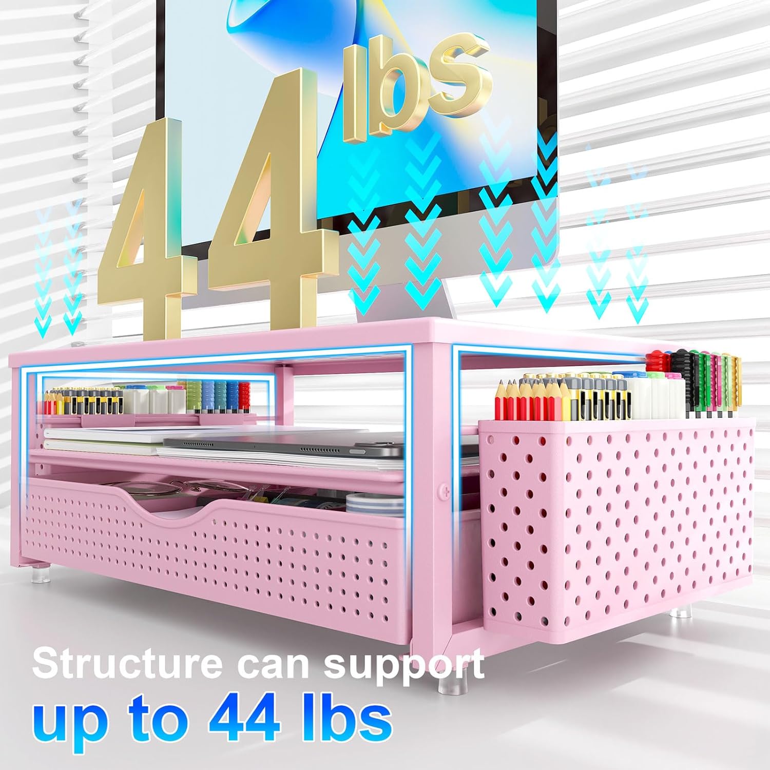 - 【Unique Desk Decor】: The monitor stand has a classic pink coating, adding elegance and modernity to your office while being sturdy and practical. allowing you to work in a cozy and tidy environment with greater comfort and efficiency.