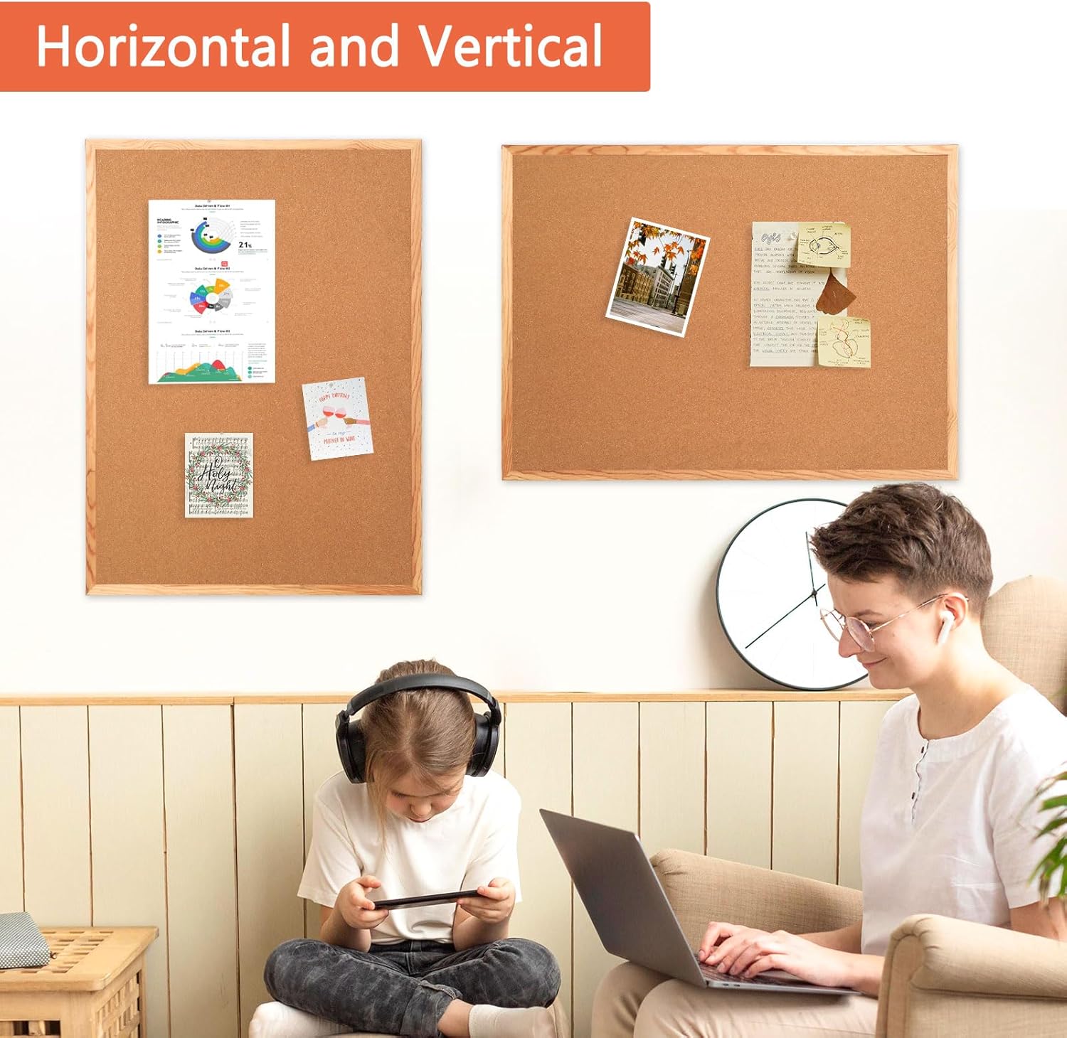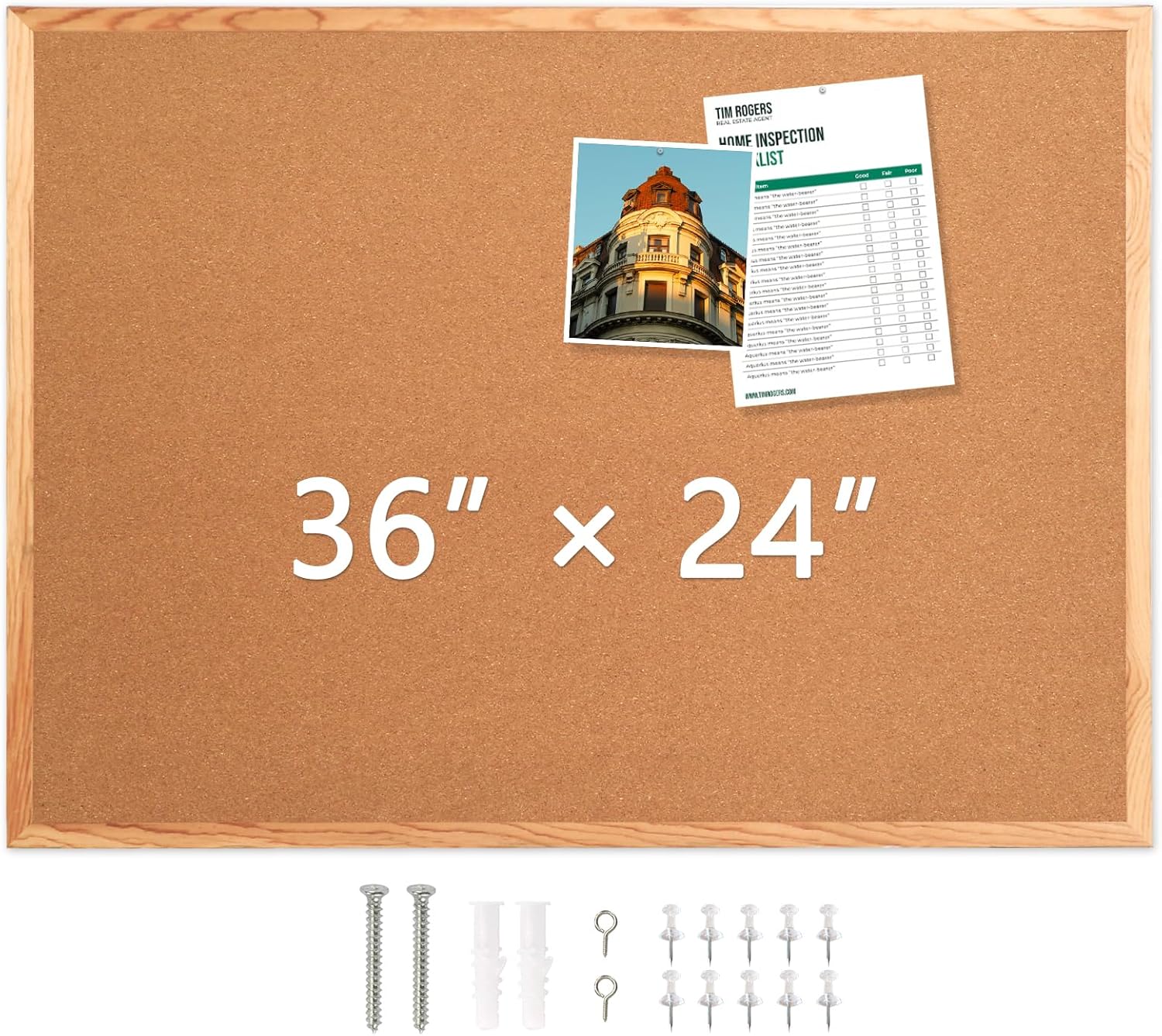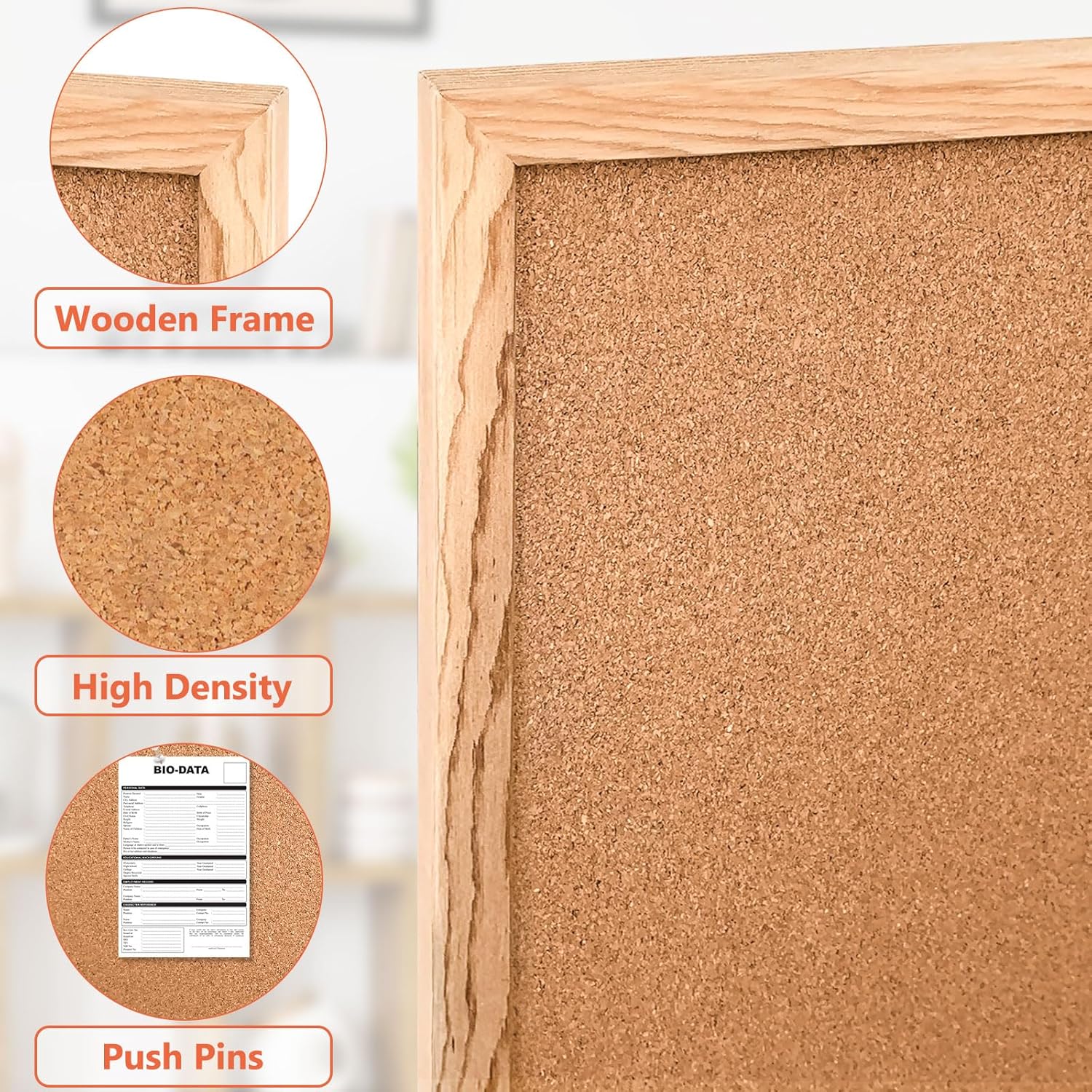 WALGLASS Cork Board 36" x 24" Wooden Frame Bulletin Board, Pin Cork Board for Wall Room Decoration Display Board for Home Office, 10 Pins