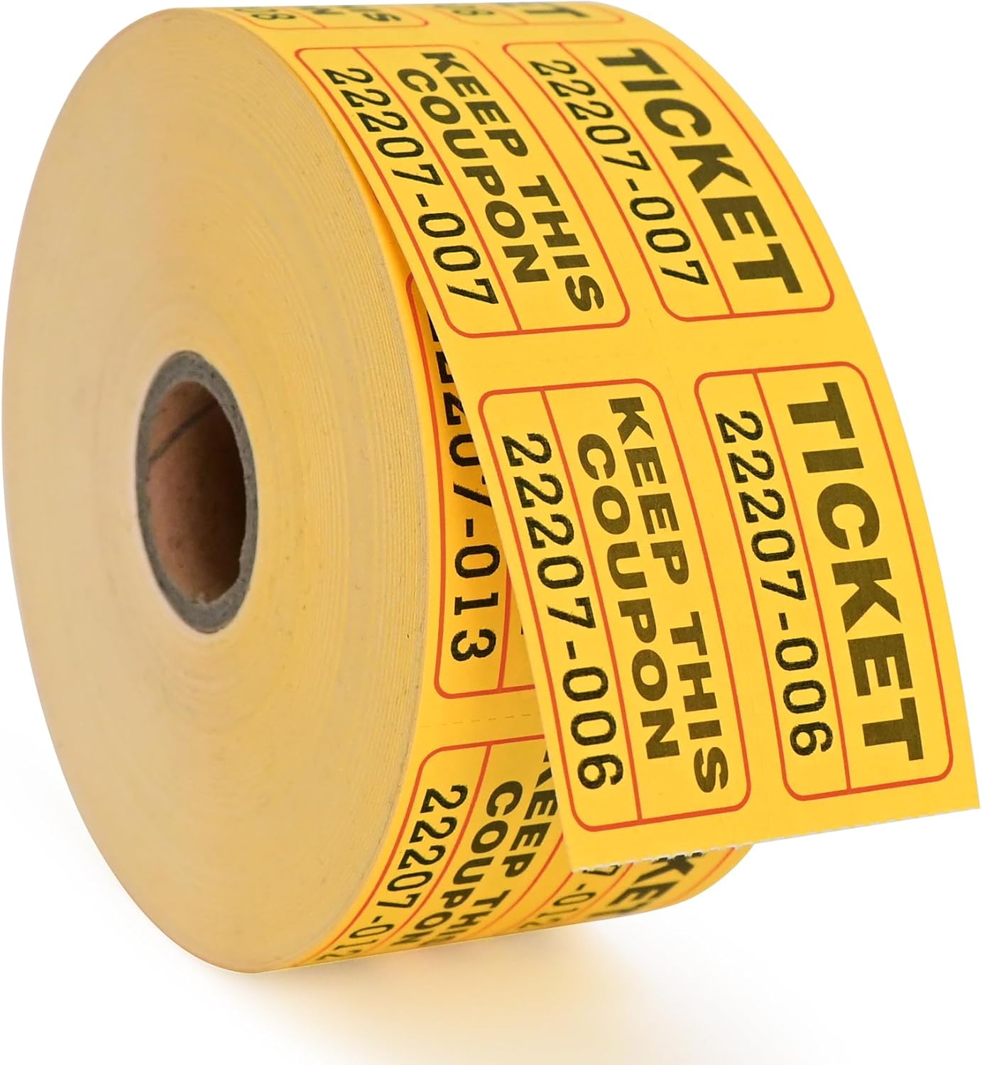 - RAFFLE TICKETS:1000 raffle ticket, neon yellow, 50/50 tickets are 2"x 2"and split into two 1"x 2"portions.