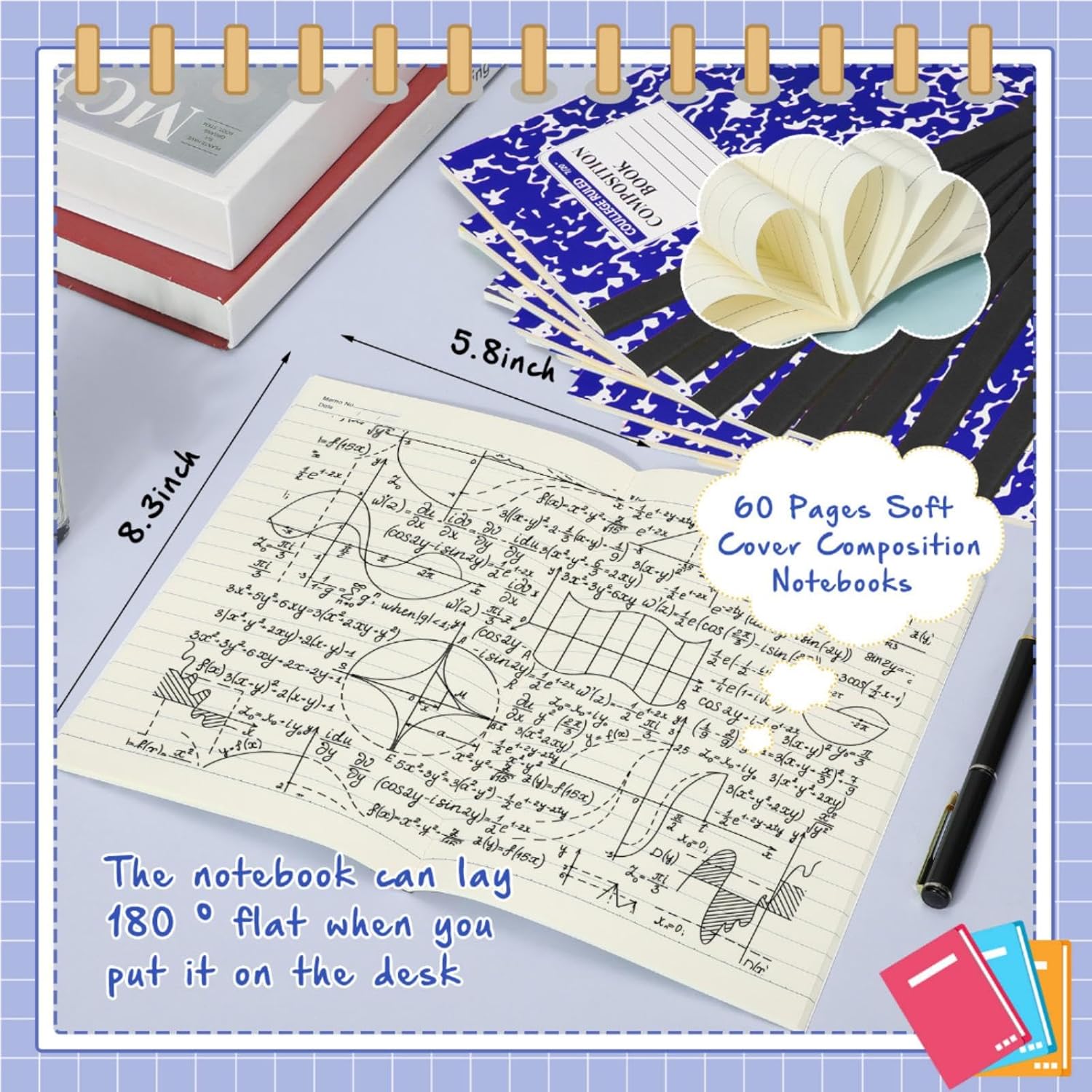 - Wide Ruled Sheets: each college ruled composition notebook contains A5 8.2 x 5.5 inch wide ruled sheets, notebook Include 60 pages to help you keep your notes organized, the quality paper of these marble composition notebook handles mechanical pencils, gel pens, ink pens and highlighters and won't bleed ink, so you will have a wonderful experience