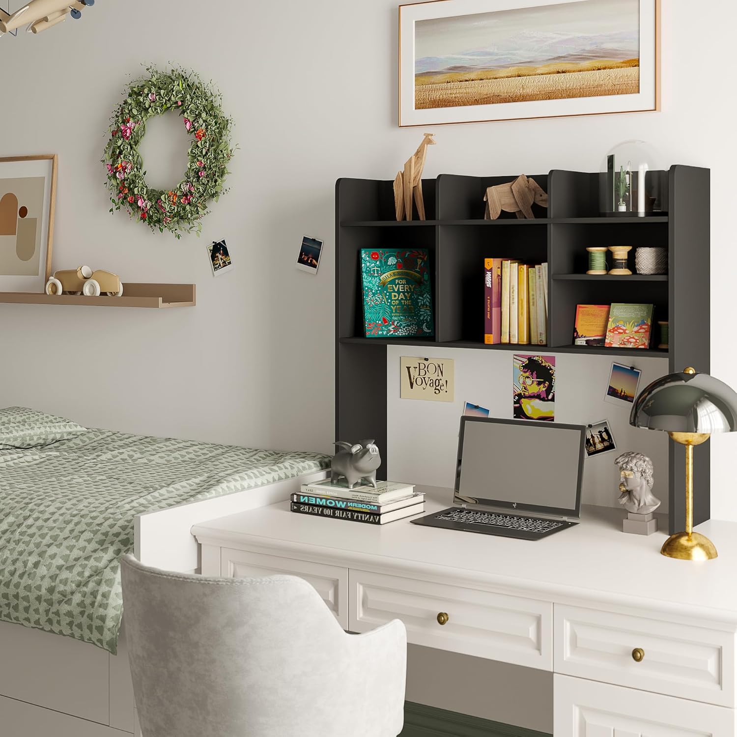 ChooChoo Desktop Bookshelf, Wood Desk Hutch Organizer with 7 Shelves for Computer Desk, Desktop Shelf Bookshelf Storage for College Dorm Office Home, Black