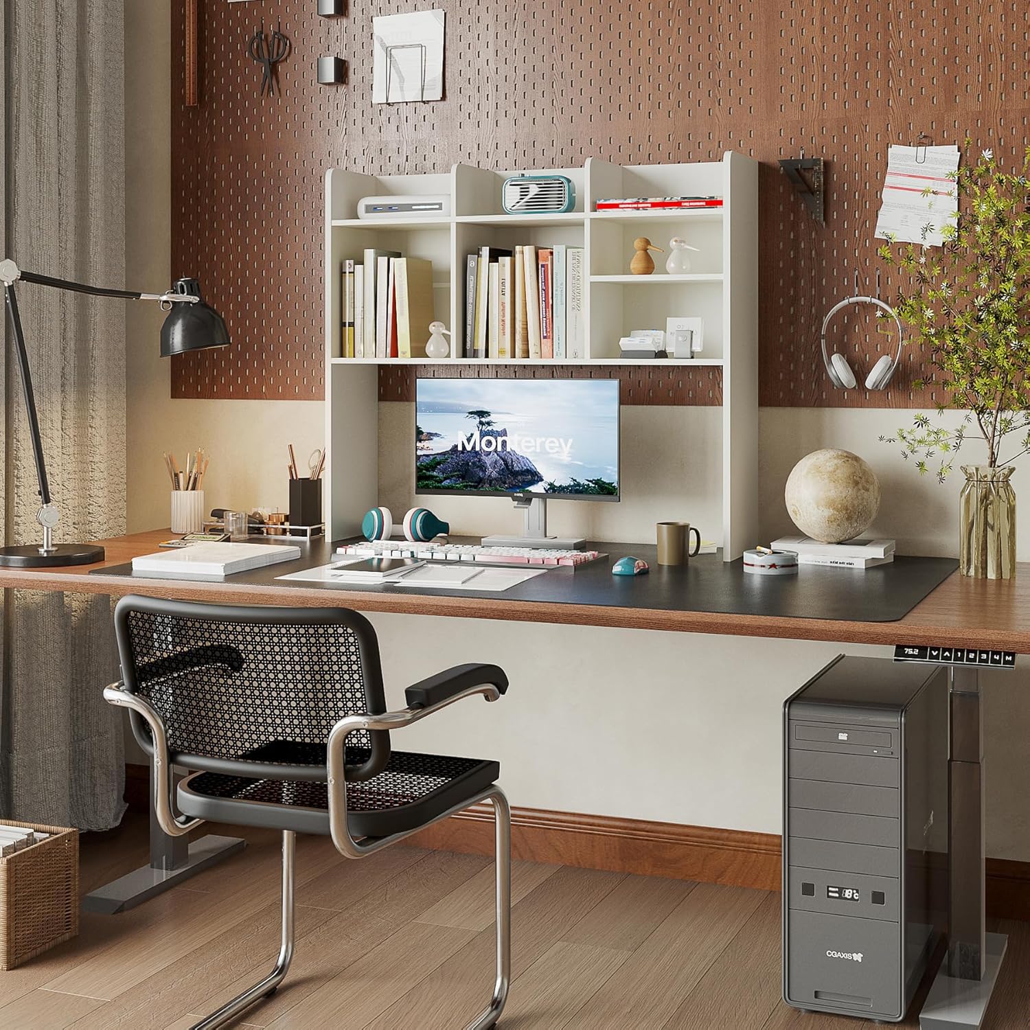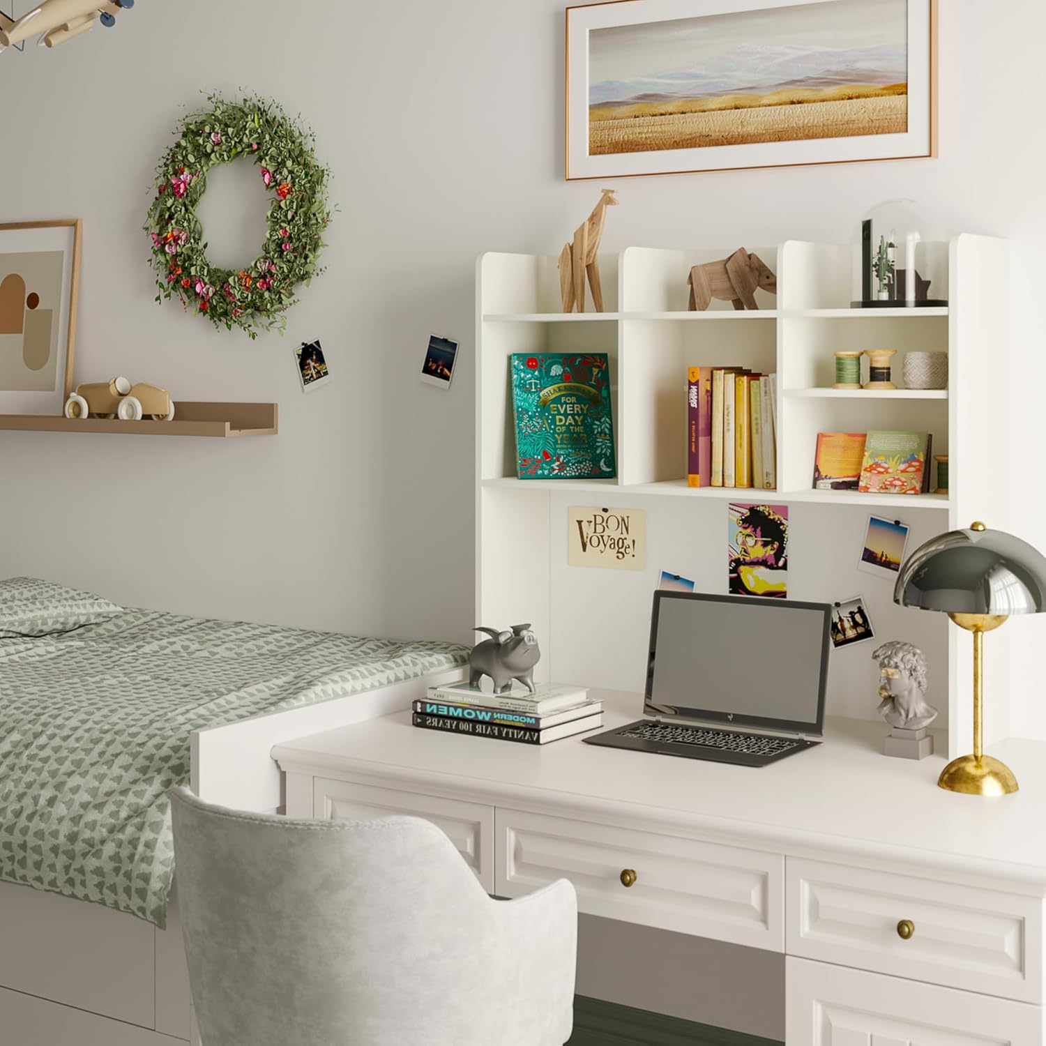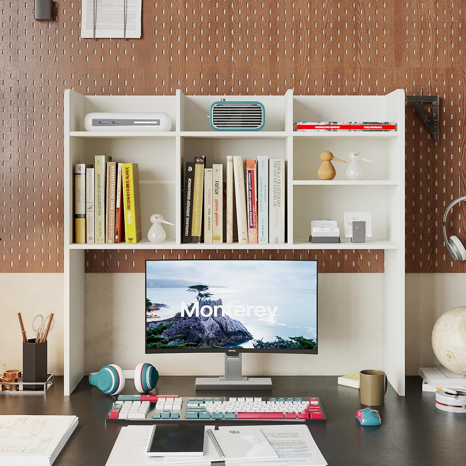 ChooChoo Desktop Bookshelf, Wood Desk Hutch Organizer with 7 Shelves for Computer Desk, Desktop Shelf Bookshelf Storage for College Dorm Office Home, White