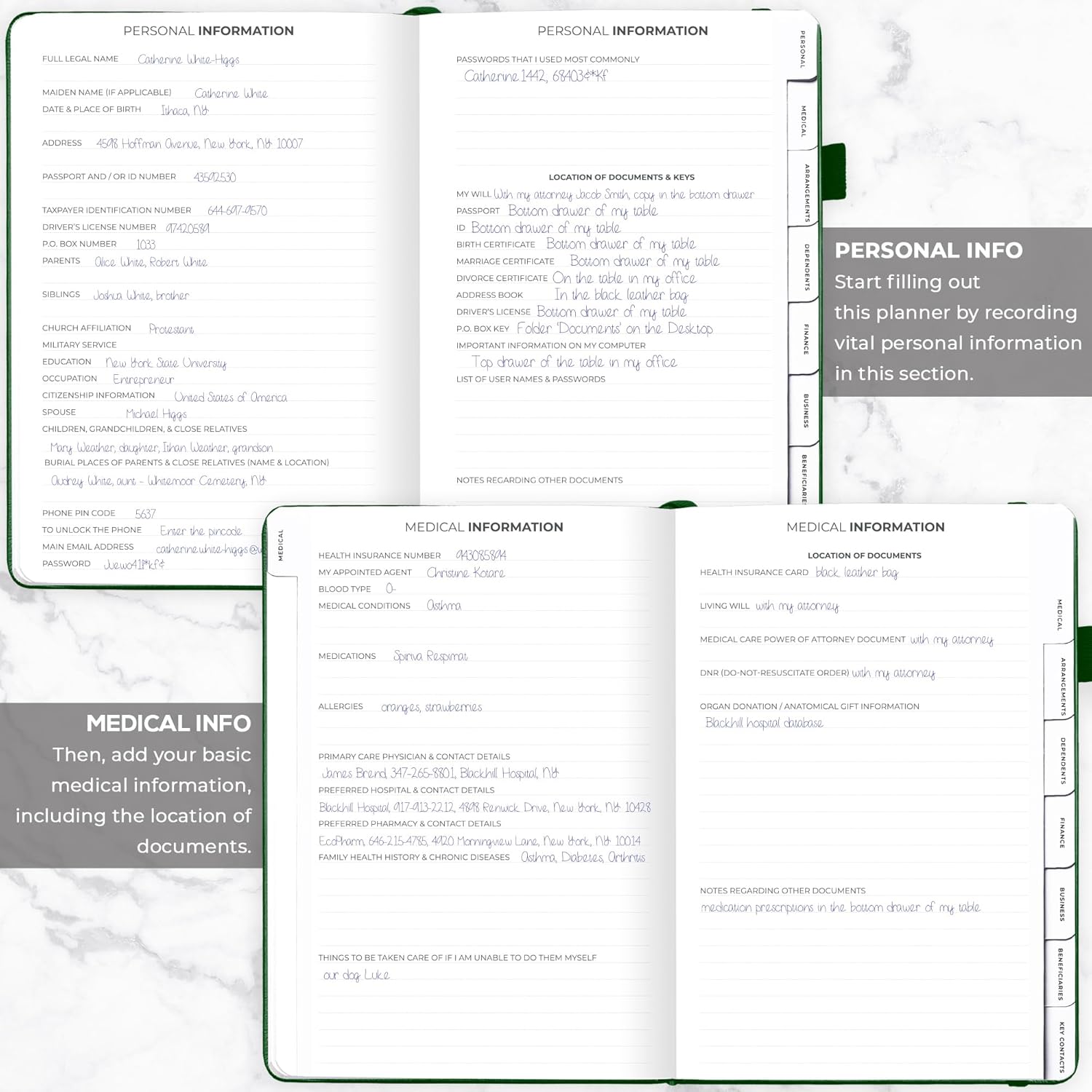 - MEDICAL & FINANCIAL INFO, INSURANCE POLICIES, ACTIVE MEMBERSHIPS & MORE: Inside this funeral planning workbook, you can add care instructions for dependents and pets, personal property, finance & business info, insurance policies, beneficiaries, and more.