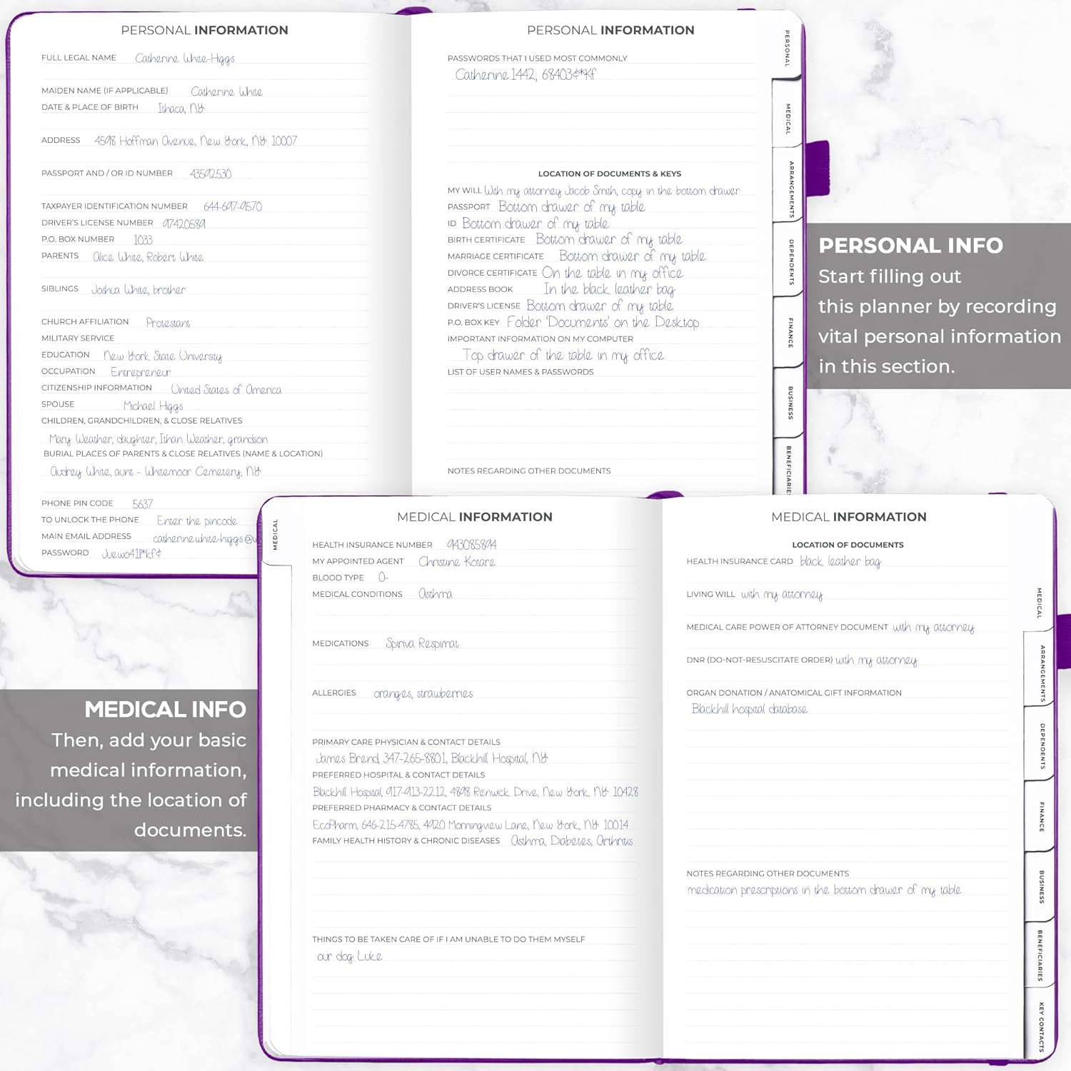 - PREPARE DETAILED INSTRUCTIONS TO GUIDE YOUR LOVED ONES: This guided final arrangements planner is an easy-to-use tool for organizing all essential personal information, from medical data to passwords and financial records.