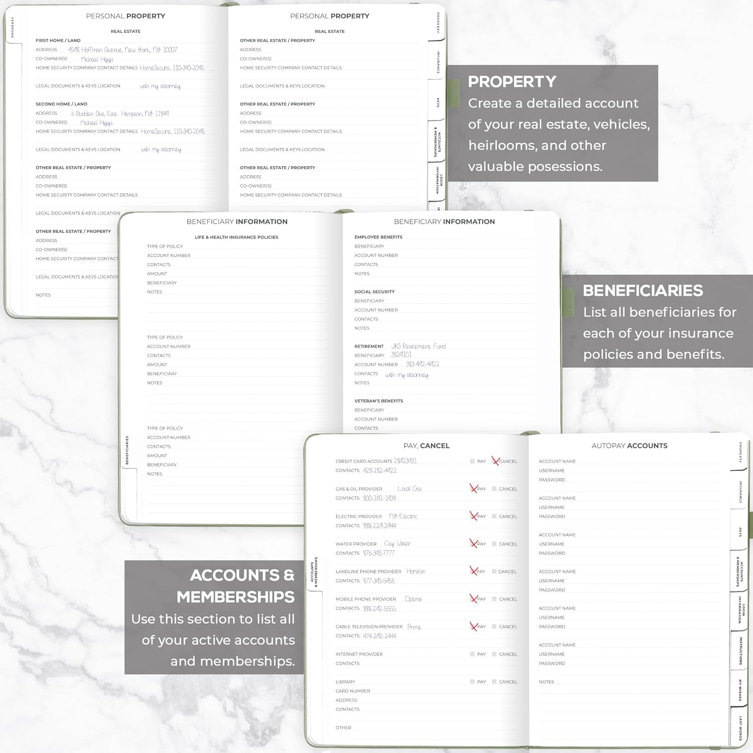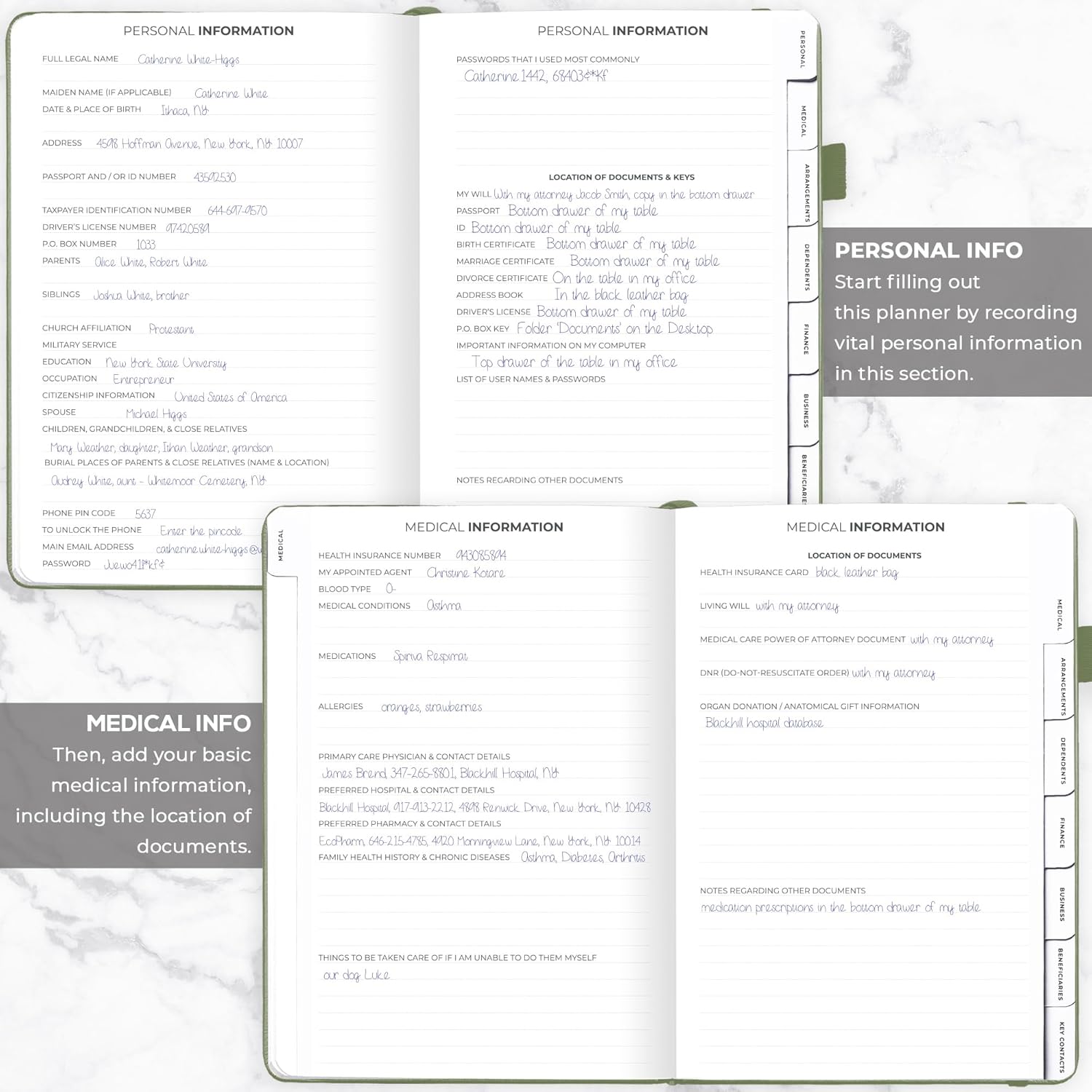 - PREPARE DETAILED INSTRUCTIONS TO GUIDE YOUR LOVED ONES: This guided final arrangements planner is an easy-to-use tool for organizing all essential personal information, from medical data to passwords and financial records.