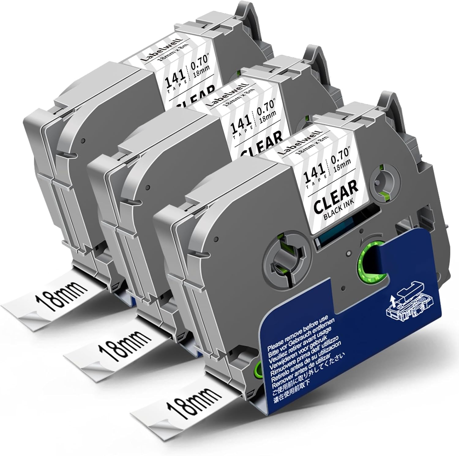 - Package Contents: 3-Pack Replacement for Brother P Touch Label Tape TZe-141 TZe141 TZ141, Color: Black on Clear (Black Text on Clear Tape)