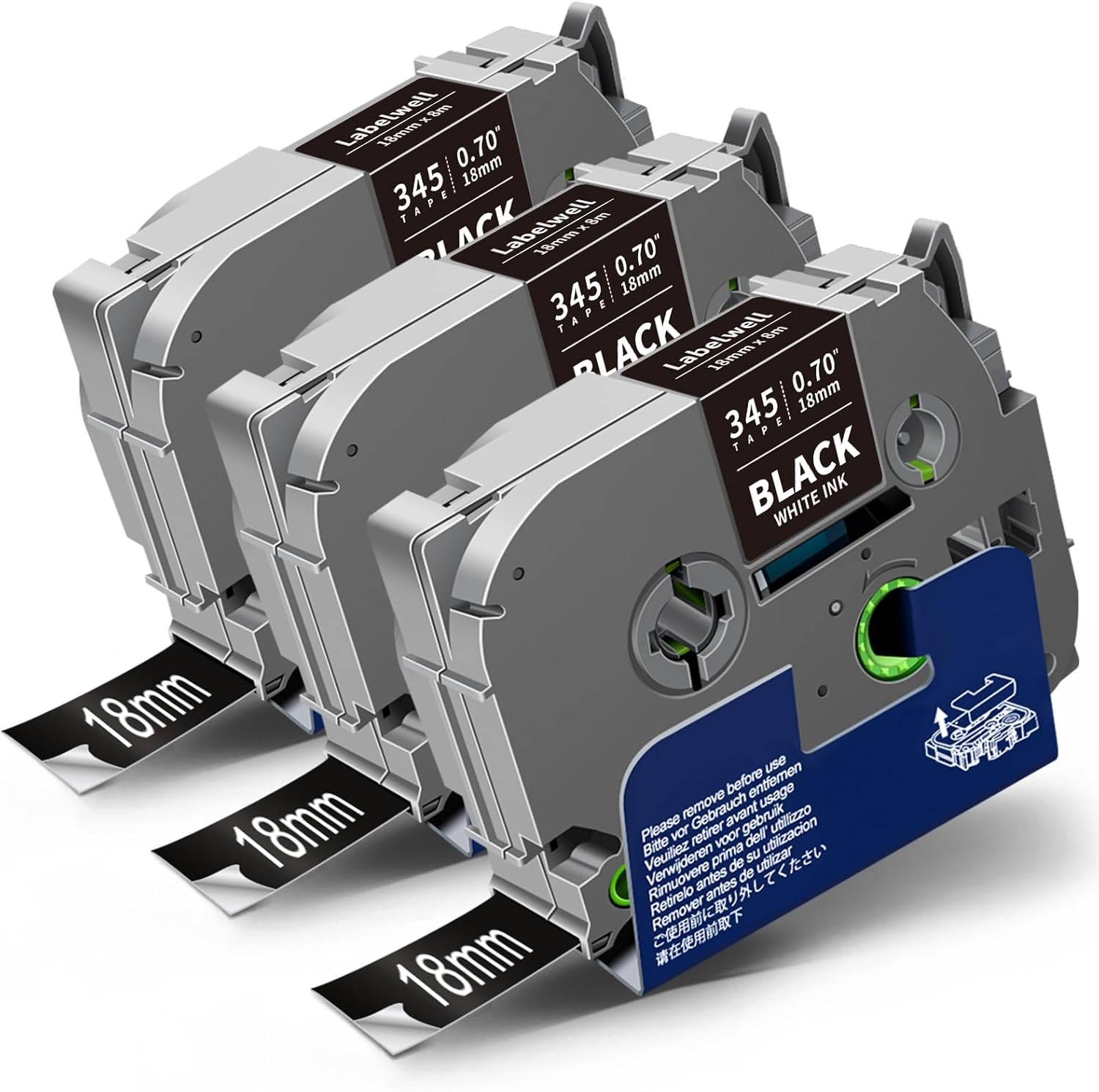 - Package Contents: 3-Pack Replacement for Brother P Touch Label Tape TZe-345 TZe345 TZ345, Color:White on Black (White Text on Black Tape)