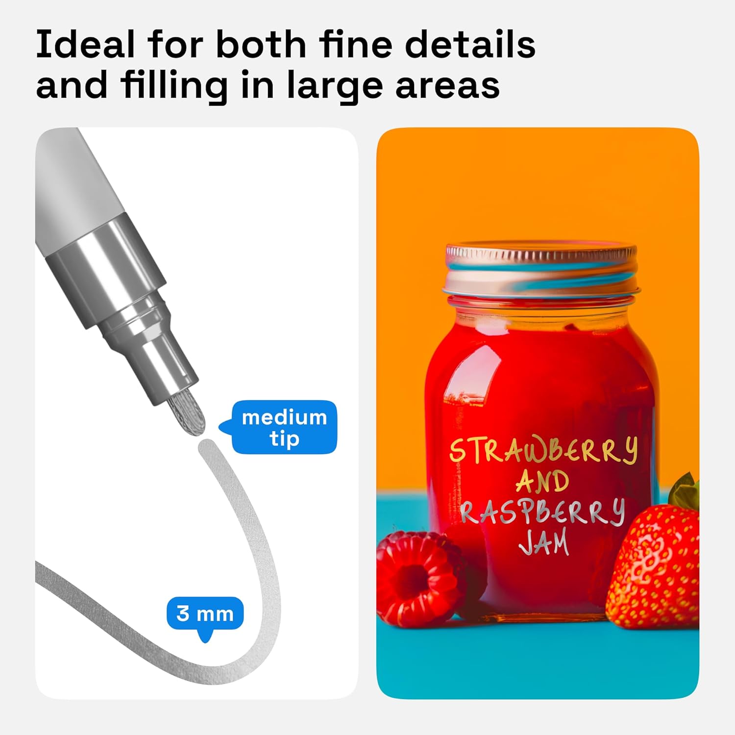 - Medium Tip: Each oil paint pen is made for fine line work. Detail your DIY project with these oil based pens. Each oil based paint marker will add some shine to your art, no matter the occasion – Christmas, birthday, or wedding decorations!