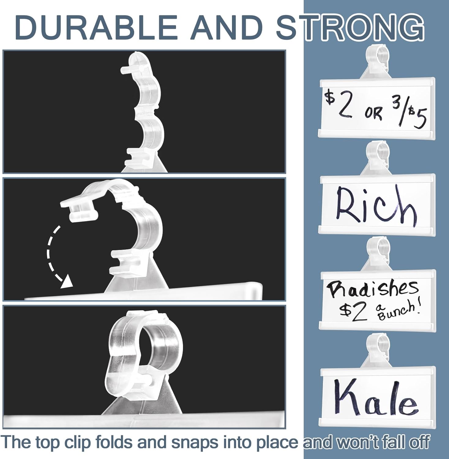 - Package includes 50 pieces plastic wire shelf label holders and 100 sheets matched white blank cards.