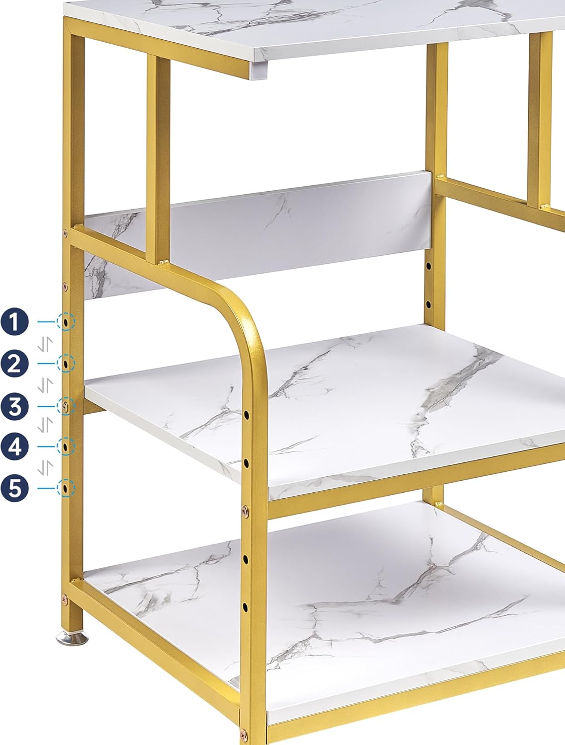 Printer Table with Storage for Home Office Organization, 3 Tier Printer Stand with Height Adjustable Shelf, Rolling Printer Cart with Wheels, White Gold