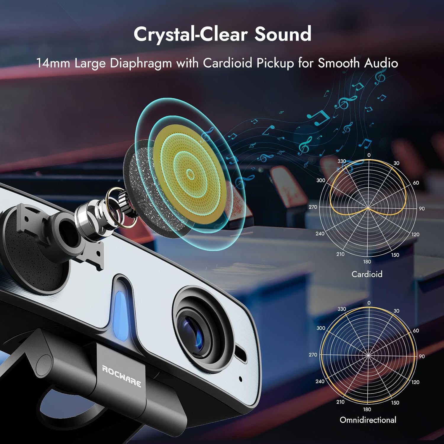 ROCWARE RC28 1080P 60FPS Webcam with Dual Microphones | Cardioid & Omnidirectional Pickup, Hi-Fi Sound, AI Noise Cancellation & Raw Audio Modes for Streaming, Video Calls & Studio-Quality Recording