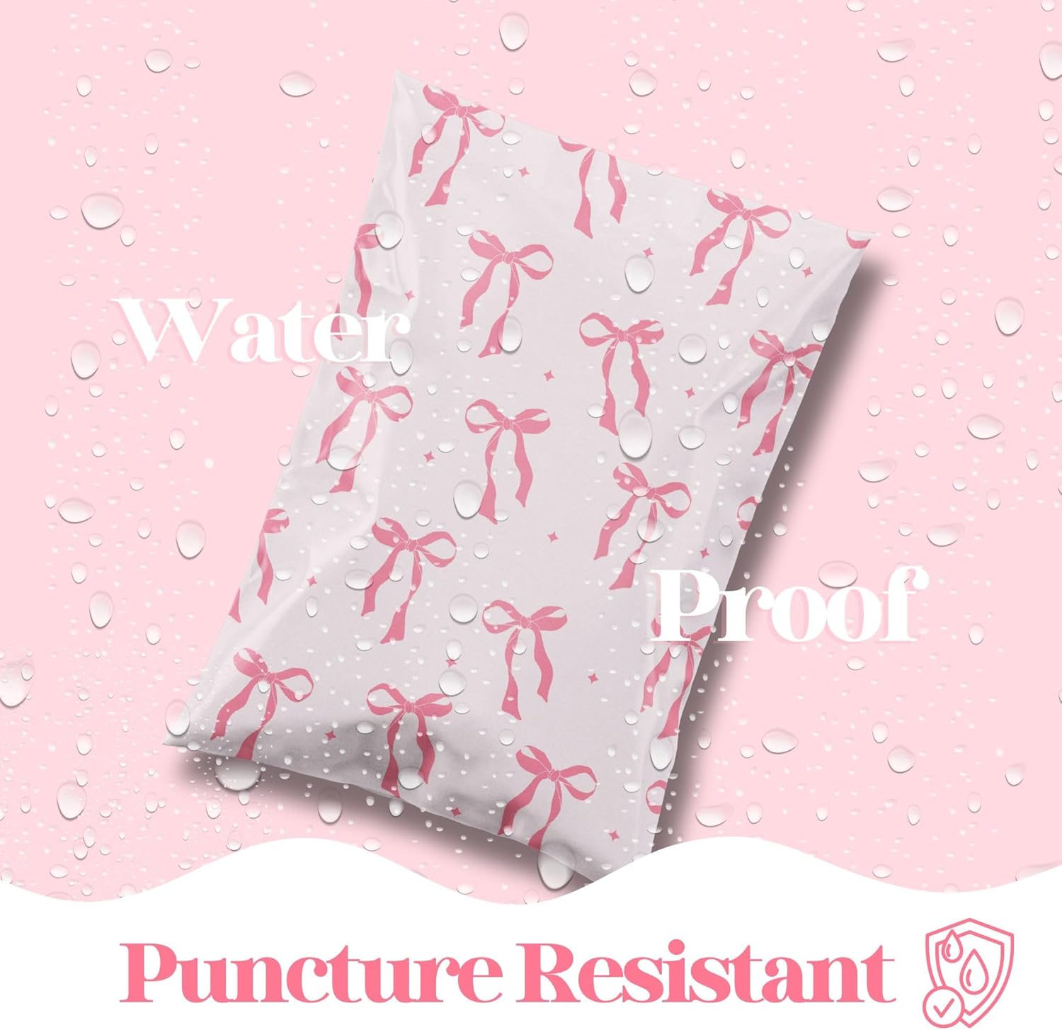6x9 Designer Poly Mailer 100 Pack Heavy Duty Waterproof Self Seal Shipping Bags for Small Business Large Mailing Envelopes Bulk Tear Resistant Cute Packaging Pink Bows Coquette