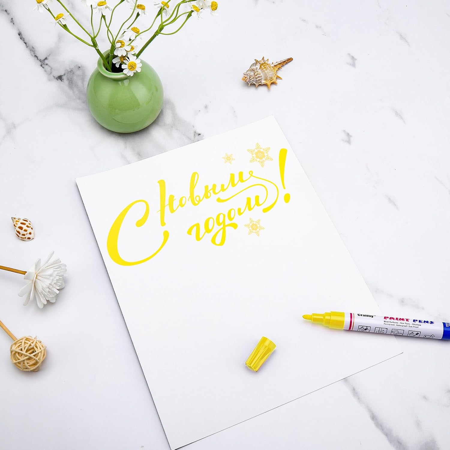 Yellow Paint Markers, 12 Pack Oil-Based Waterproof Quick Dry Permanent Paint Pen Set for Rocks Painting, Wood, Fabric, Plastic, Canvas, Glass, Mugs, Metal, Tire, Stone, DIY Craft