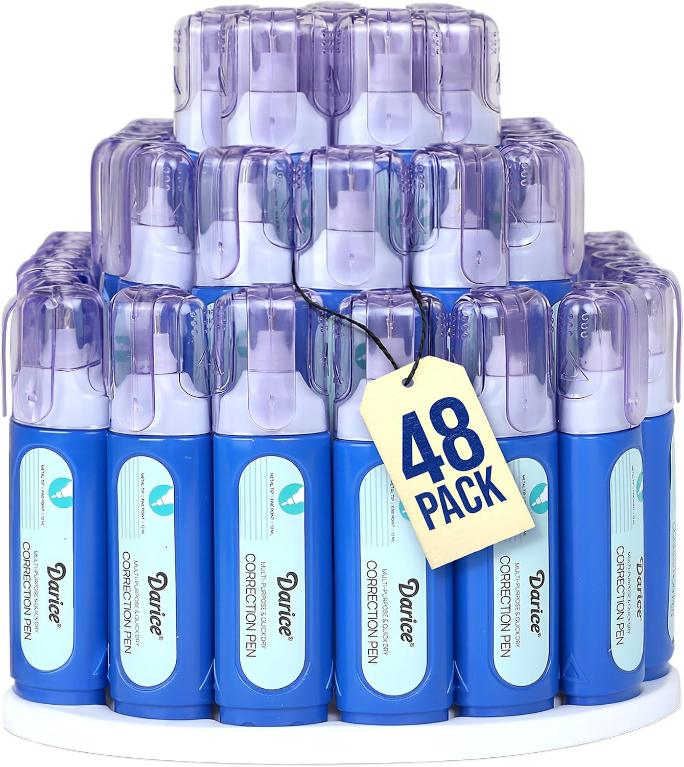 DARICE Liquid Correction Pen Box of 48 - Multi-Purpose Liquid White Out Pen with Metal Tip for School, Office & Home