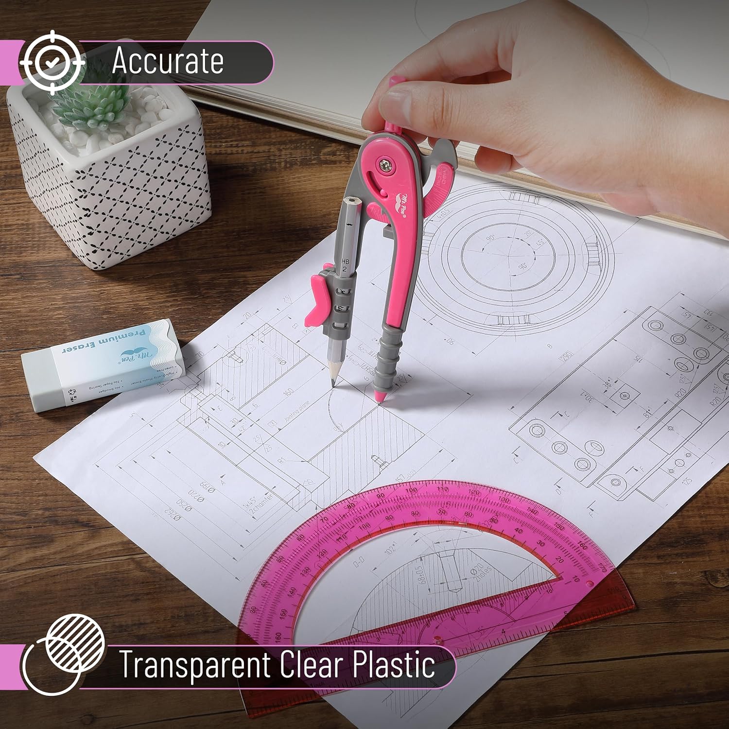 - Mr. Pen drawing set includes a high-precision compass and a protractor, essential for tasks in geometry, drafting, and artistic projects.