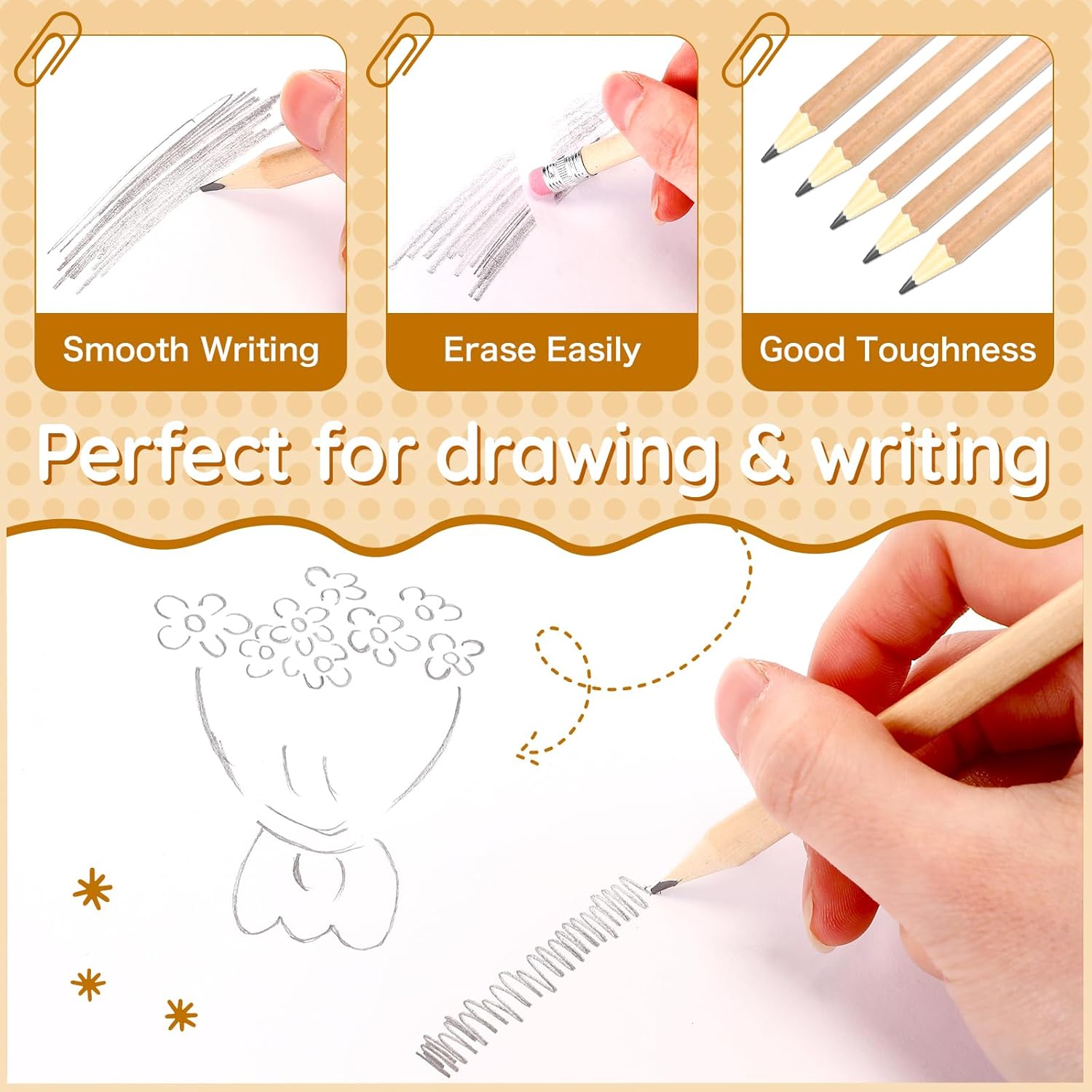 - Convenient and Easy to Use: designed keeping user convenience in mind, pencils with erasers arrive pre sharpened, so they're ready to use right out of the box; What makes them more convenient is the eraser tops, no need to carry extra erasers, making them suitable for quick note taking or creating art
