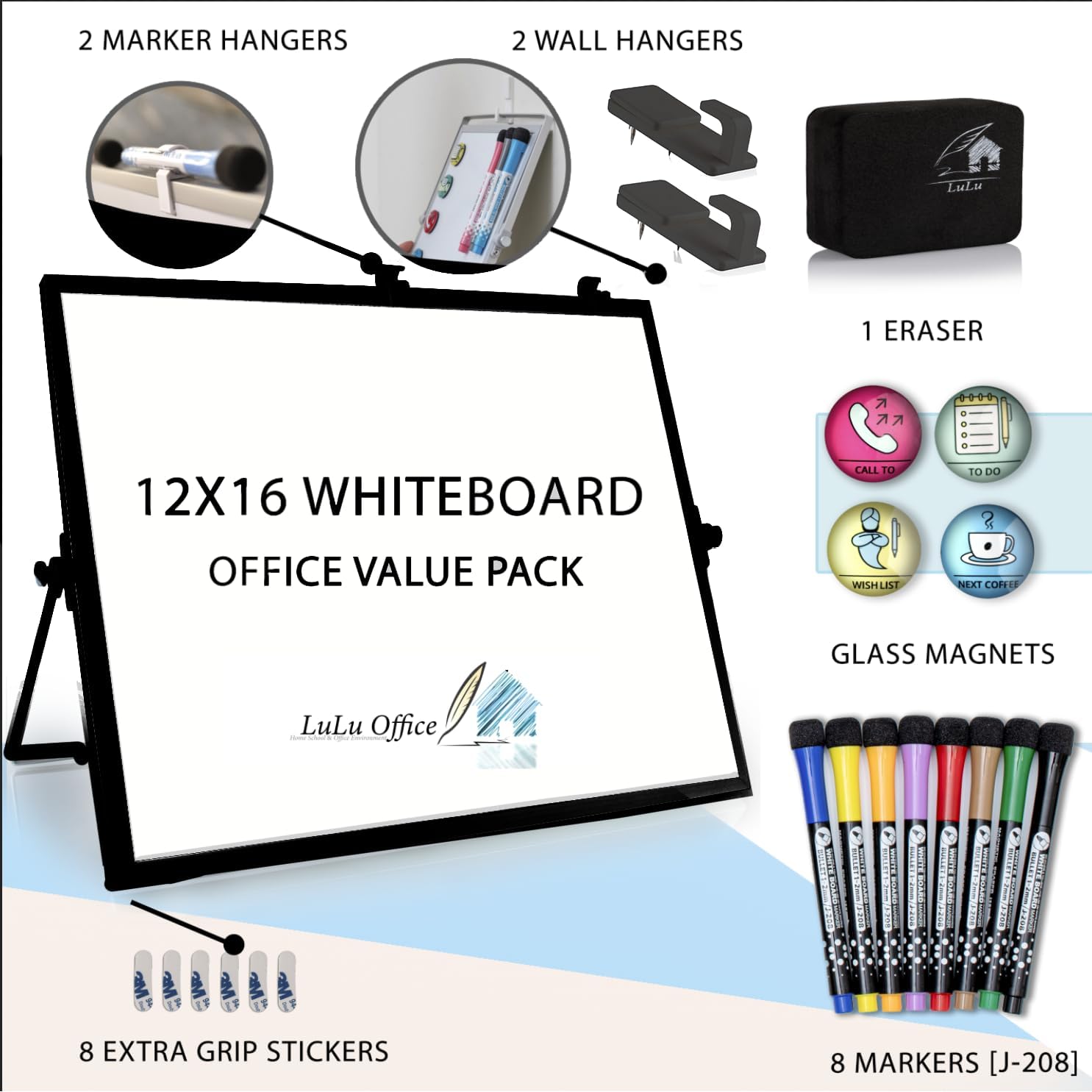 - Hang Or Stand: The 12"x16" double-sided board allows for smooth writing and effortless wiping. Switch between the hanging, standing, or flat options. 2 wall hangers are included and are easy to install