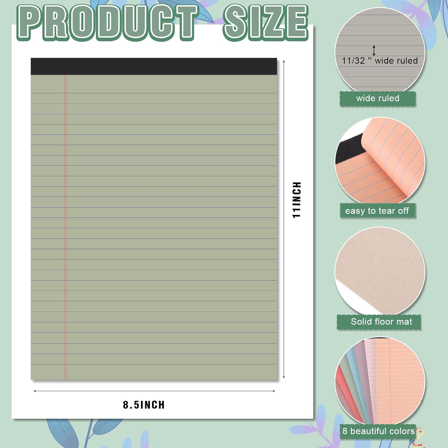 Fuutreo 8 Pcs 8.5'' x 11'' Colored Legal Pad Writing Pads Wide Ruled 50 Sheets Per Notepad Perforated Writing Notepad Office Supplies for School College Office Business (Retro Colors)