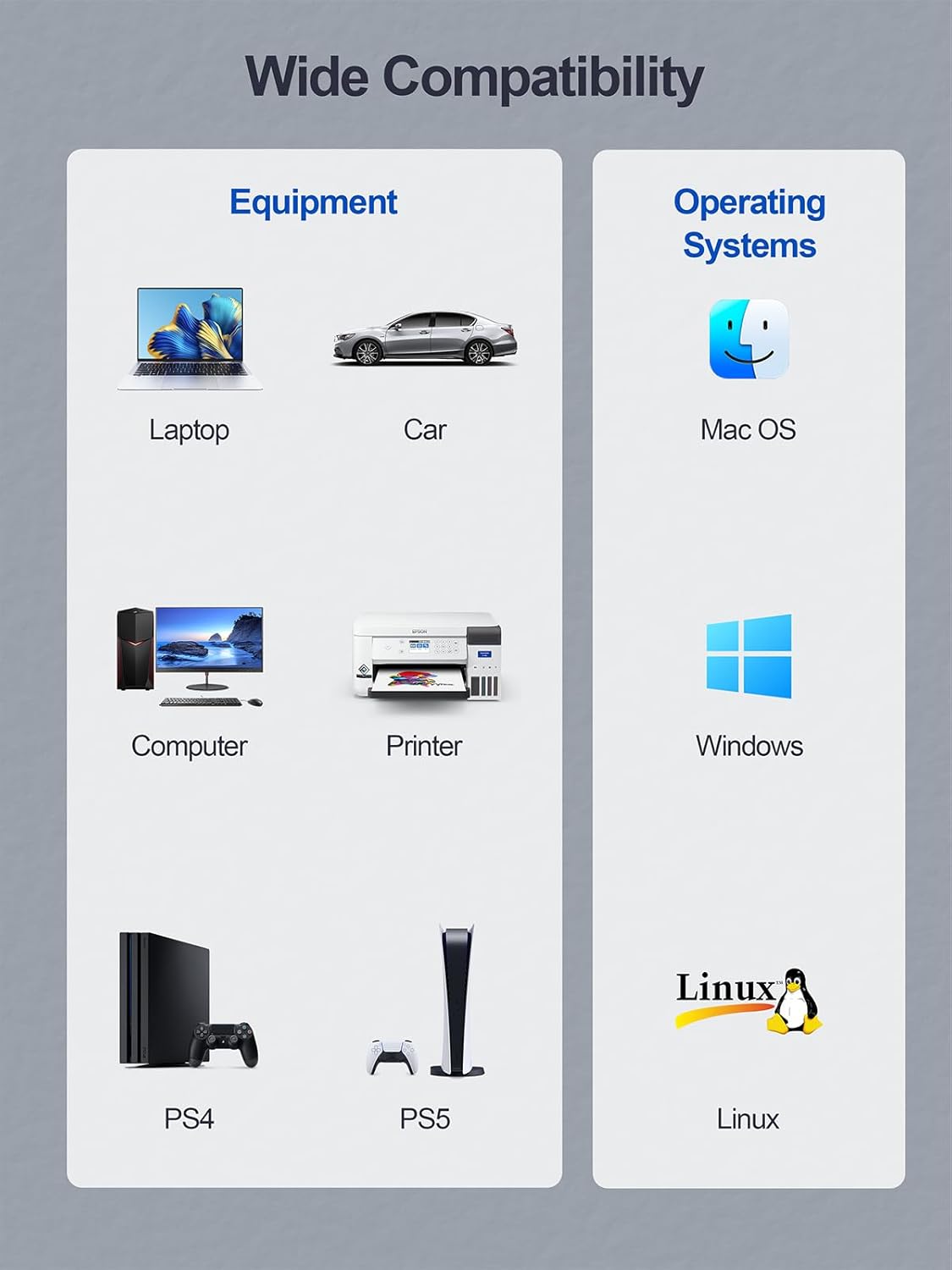 - Wide Compatibility: USB multiport adapter compatible with Laptops, towers, XBOX, PS4, flash drives, printers, mice, card readers, hard drives, cell phone OTG adapters, keyboards, cameras, consoles, USB cables, and Works on Windows, ChromeOS, Linux.. (USB 3.0 hubs are reverse compatible with USB 2.0 and USB 1.1)