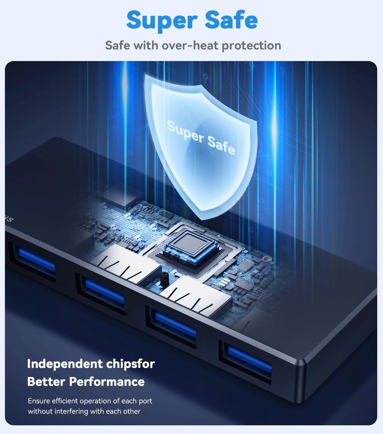 - High-Speed Data Hub: The 4-port USB distributor utilizes high-efficiency USB 3.0 to provide stable data transfers of up to 5Gbps (USB 3.0) and supports transfer speeds of 480Mbps (USB 2.0) and 12Mbps (USB 1.1).***This device is only used for data transmission and cannot be used to charge the device***