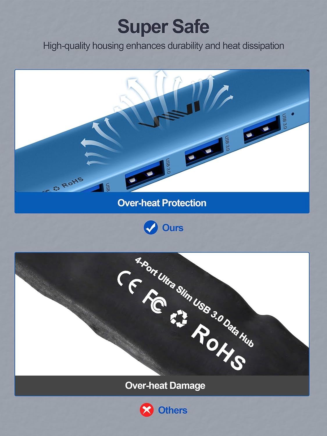 - High-Speed Data Hub: The 4-port USB distributor utilizes high-efficiency USB 3.0 to provide stable data transfers of up to 5Gbps (USB 3.0) and supports transfer speeds of 480Mbps (USB 2.0) and 12Mbps (USB 1.1).***This device is only used for data transmission and cannot be used to charge the device***