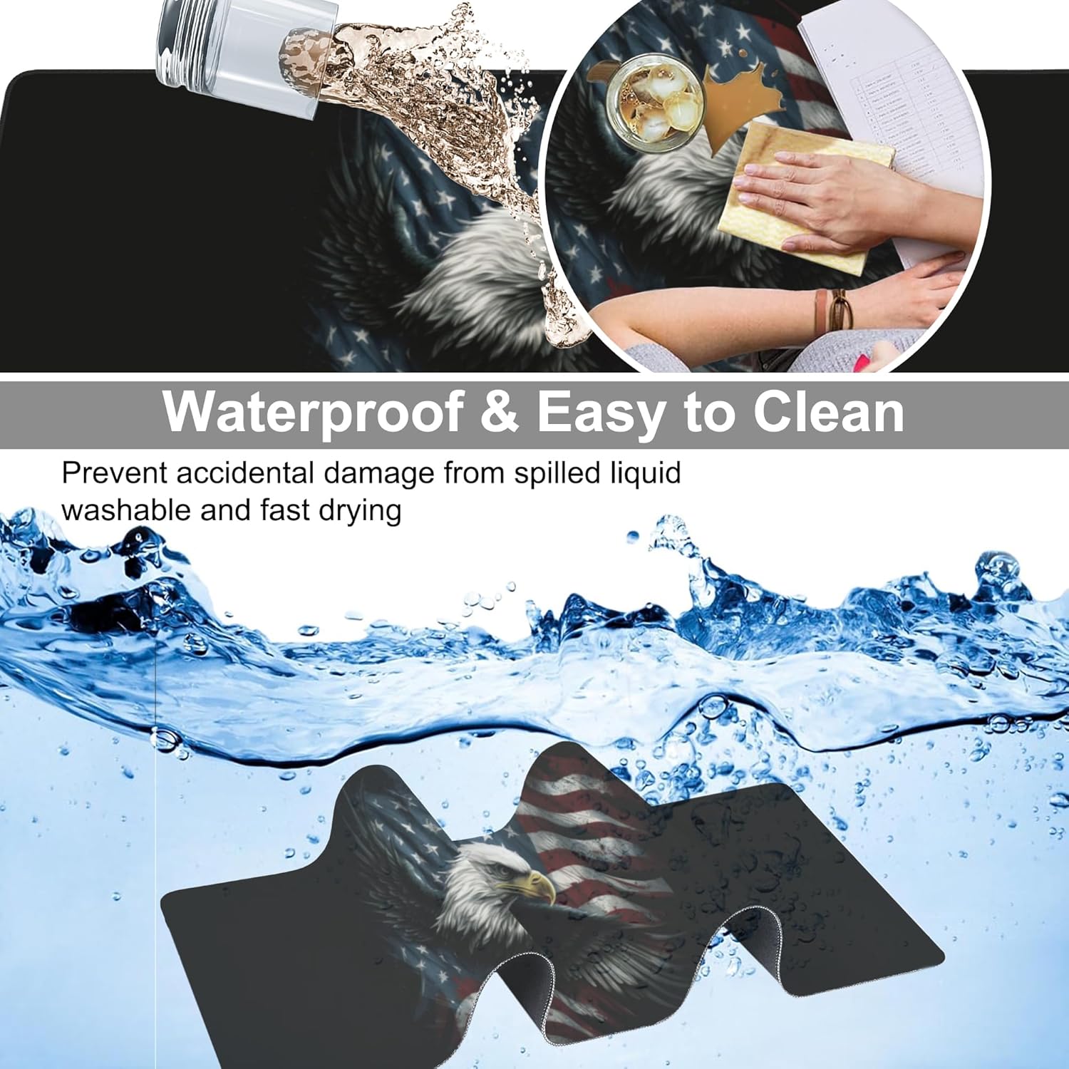 Desk Mat, USA Flag and Bald Eagle Extended Large Gaming Mouse Pad for Desk XXL, Non-Slip Rubber Base Stitched Edges Long Computer Keyboard Desk Pad Mouse Mat for Home Office Gaming 35.4"X15.7"