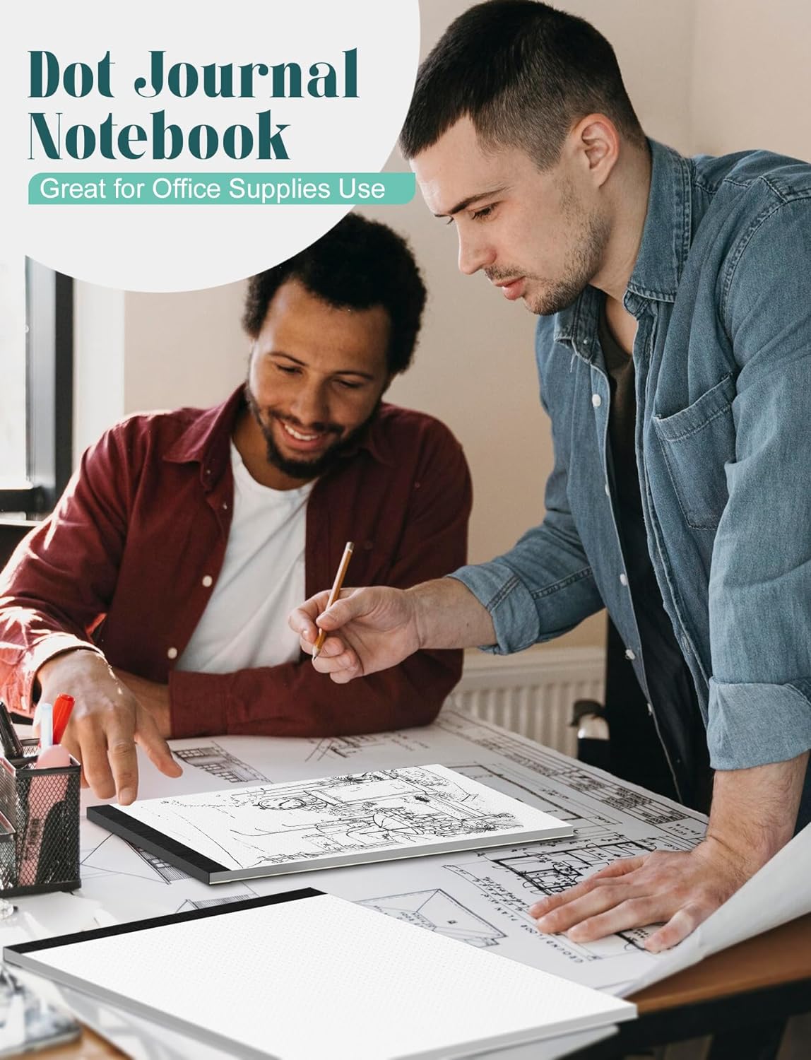 - 【CONVENIENT SIZE】- This dotted paper 8.5 x 11 notebook contains dot grid paper with 30 sheets, measuring at 8.5 x 11 inch (21.59cm x 27.94cm). Made with high-quality, 70 gsm acid-free dotted paper to help prevent from damages of light and airs to keep notes on the pages clearly. Our journal paper is thicker than average notebooks & writing pads, so you can confidently use most pens, pencils, without ghosting and bleed-through.