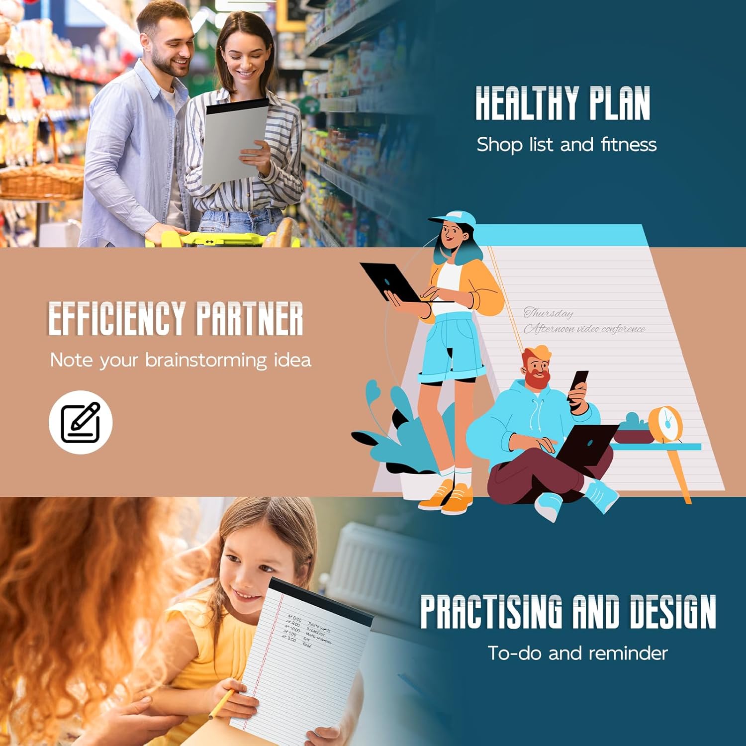 - 【Perforated Note Pads】The paper pads 8.5 x 14 perforated top edge allows for easy and neat removal of individual sheets. Also, there will not be ripping in irregular neither. Each white lined paper 8.5 x 14 has black top binding, the headings at the top are wider, provide extra spacing for writing priorities. Organizing your notes/ list/ reminder in neatly and clearly. Perfect for daily professional notes, to-do.