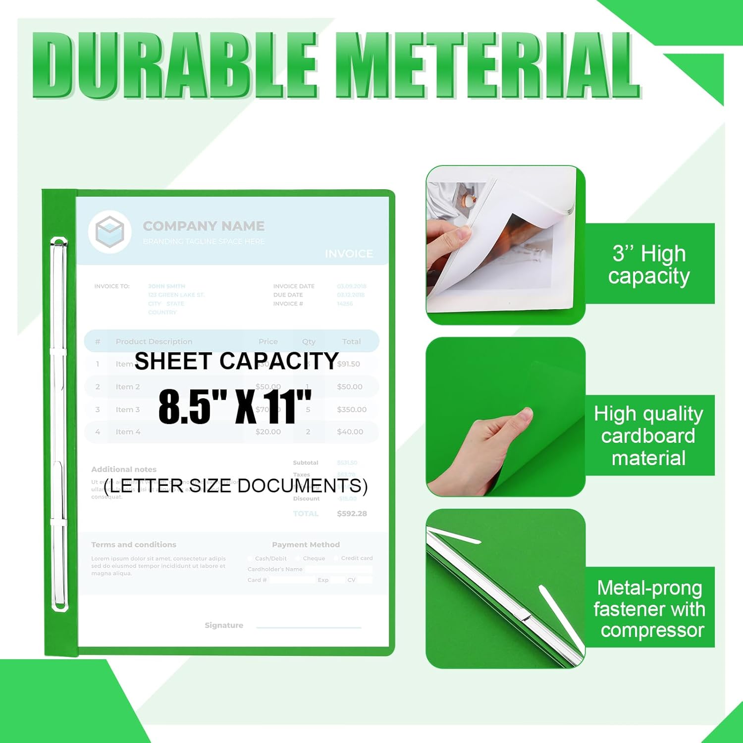 Zhanmai 15 Packs 8.5'' x 11'' Pressboard Report Covers, Metal Prong Fastener with Compressor, Letter Size 3'' Capacity Presentation Report Folder to Neatly Bind Reports, Proposals, Documents(Green)