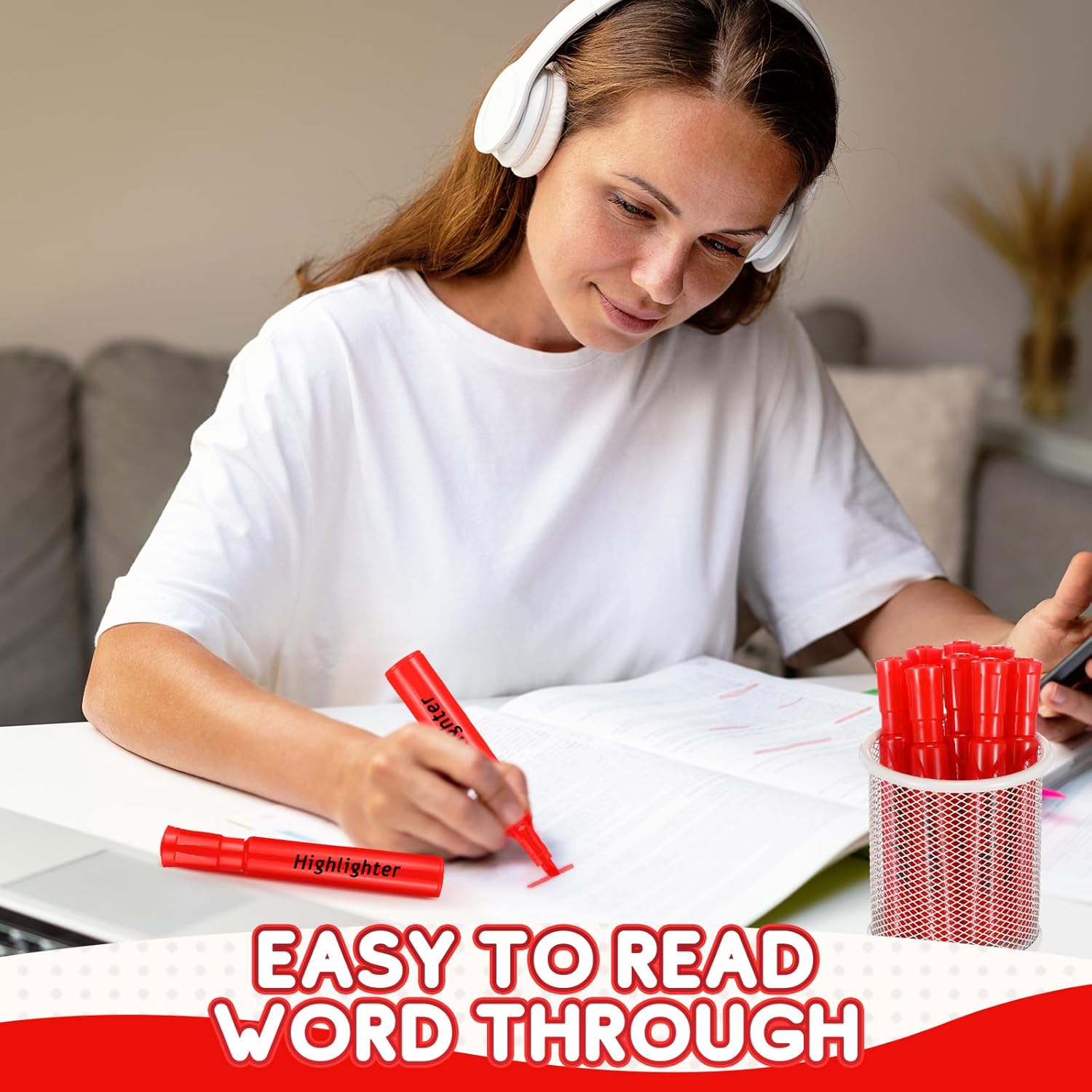 - Convenient Chisel Tip Design: our red highlighters come with a good chisel tip offering broad highlighting or fine underlining and allow you for creating thick and thin lines; Secure fitting caps can protect the tips when not in use