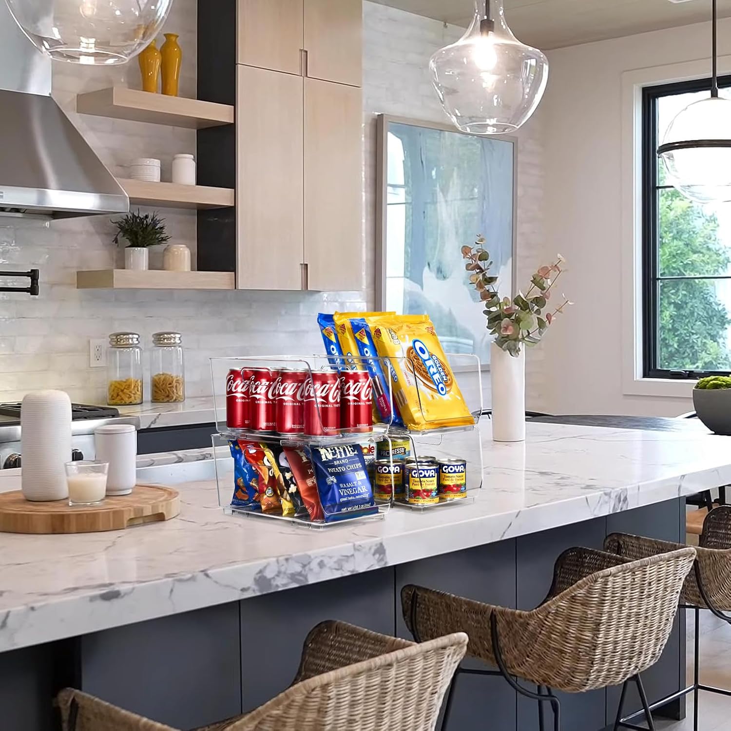 - Versatile Use: Great for storing fruits, veggies, packaged goods, yogurts, canned goods, drink boxes, baby food, condiments, cleaning supplies, bath products, makeup, and more. Versatile use as clear open front storage bins, stackable food storage bins, stackable kitchen storage, clear plastic bins for pantry, stackable cabinet storage bins, stackable bins for pantry, open bin storage basket, and stackable pantry bins