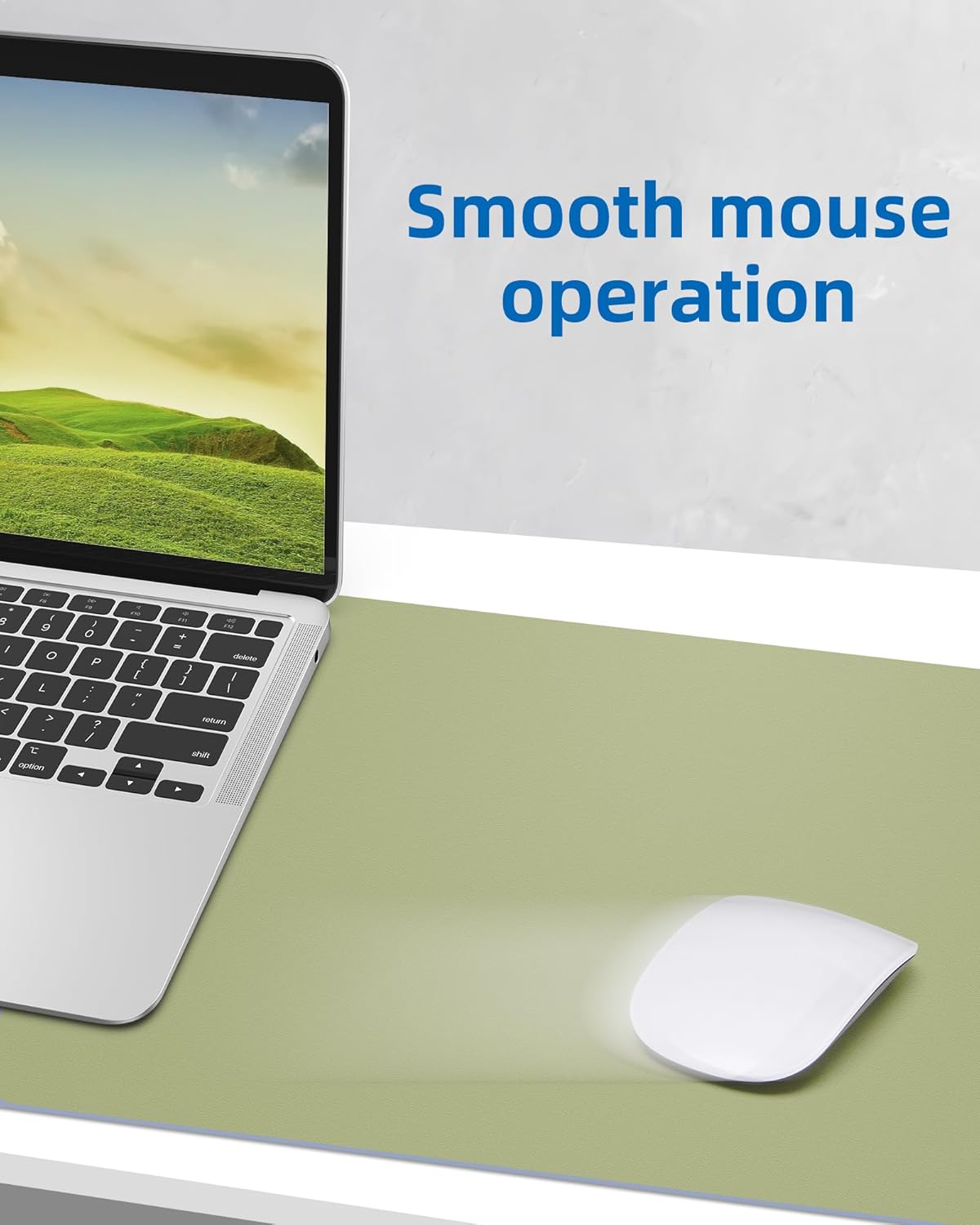 AFIING Leather Desk Pad Protector,Mouse Pad,Office Desk Mat, Non-Slip PU Leather Desk Blotter,Large Desk mat,Waterproof Keyboard mat for Office/Home/Decor (Olive Green,35"" x 17"")