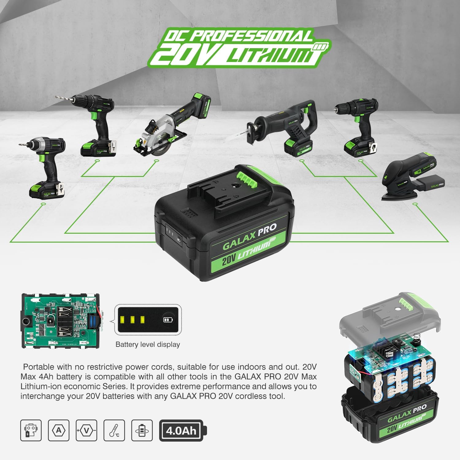 GALAX PRO 20V Cordless Reciprocating Saw, 0-3000RPM Variable Speed Power Reciprocating with 4.0Ah Battery, 2pcs Wood Blades & 1pcs Metal Blade