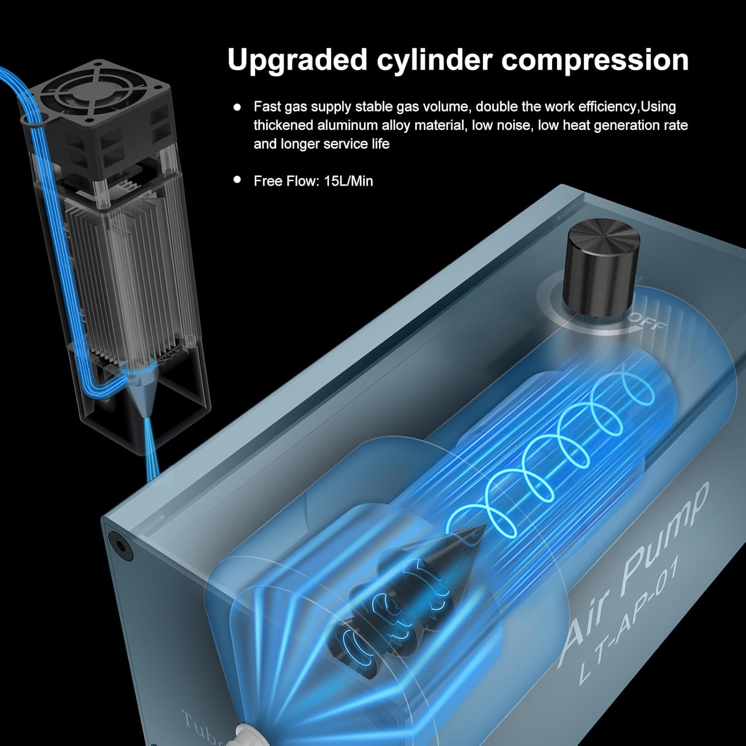 - 【All-in-one Air-assist System】Equipped with an air assist pump keeps your art with smooth lines, complete patterns, and clean material surfaces, by quickly reducing the temperature of the material surface, preventing distortion and discoloration due to high temperatures, effectively blowing away smoke and debris generated during laser engraving machine working ensures laser energy stability.