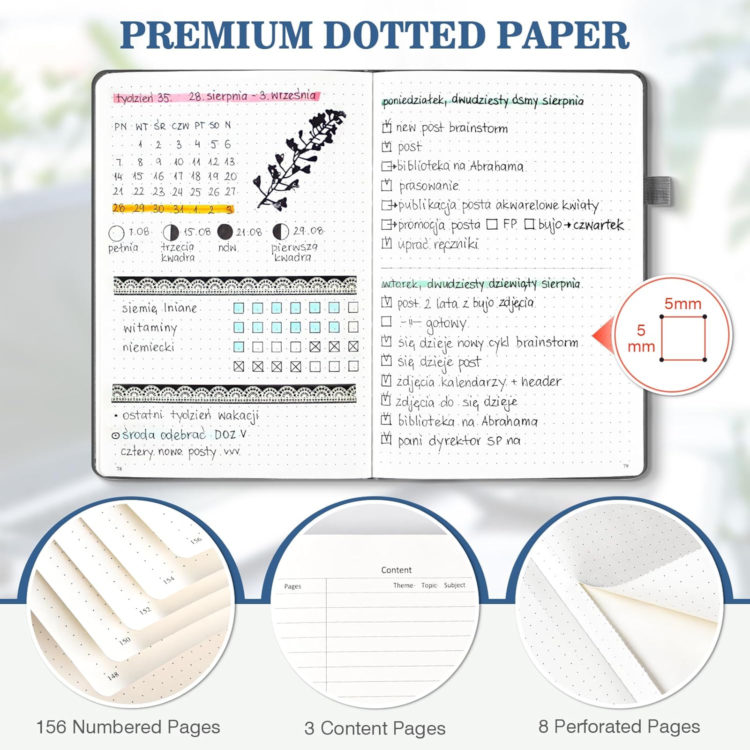- 【Wide Application】The dotted journal notebook is versatile and ideal for a wide range of users.Whether you're a student, teacher, designer, or engineer, this A5 dotted journal is your perfect companion for drawing, handwriting notes, planning, or recording. Individual packaging also makes a wonderful gift to share with friends, family, and classmates.