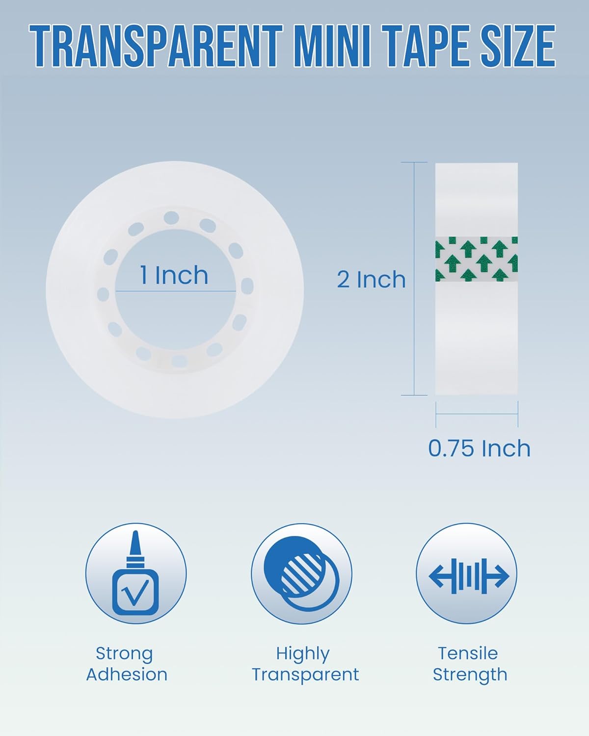 - CLEAR TRANSPARENT TAPE: Crystal clear Stationery Tape, that gives you a strong, secure and permanent seal, great addition to your back to school supplies and repairing original documents, book and photos