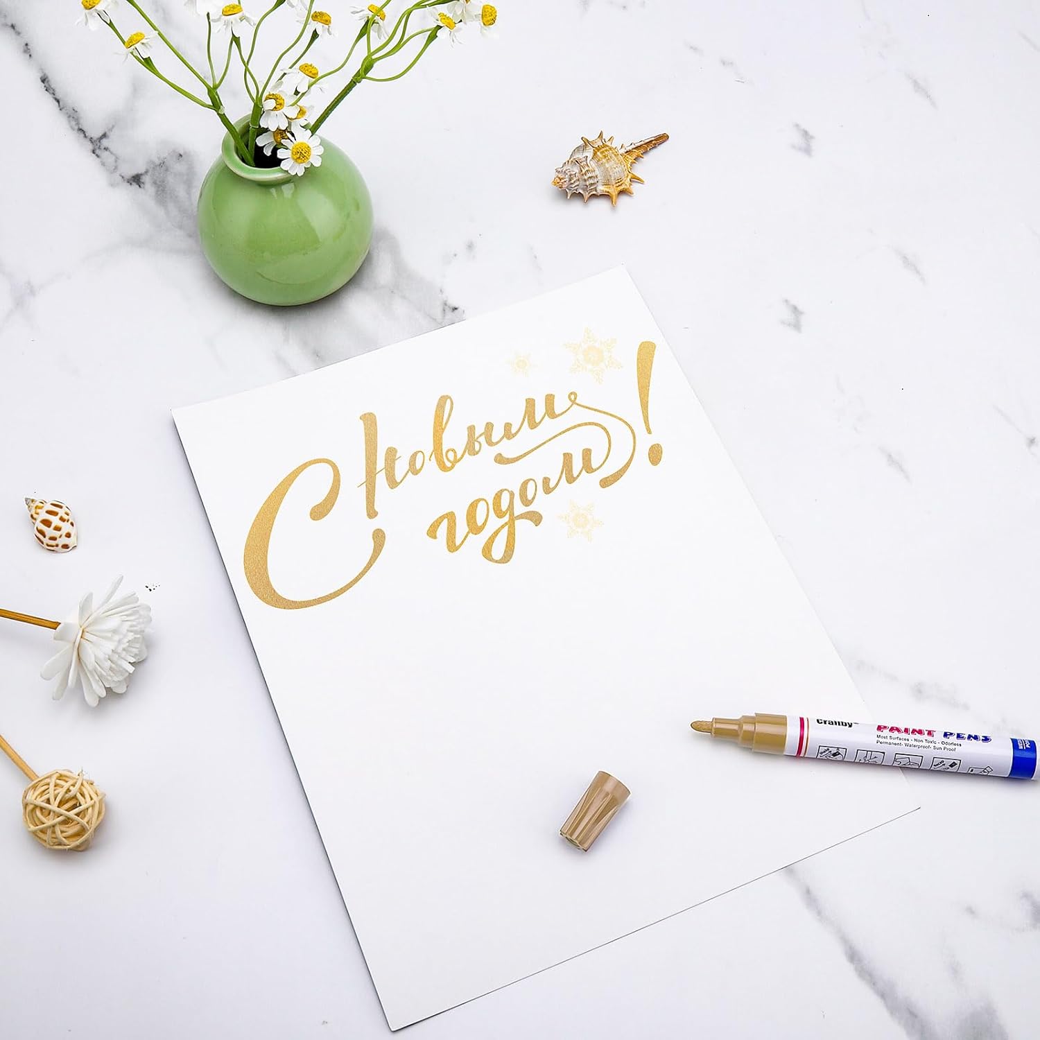 Paint Markers, 12 Pack Oil-Based Waterproof Quick Dry Permanent Paint Pen Set for Rocks Painting, Wood, Fabric, Plastic, Canvas, Glass, Mugs, Metal, Tire, Stone, DIY Craft (Gold)