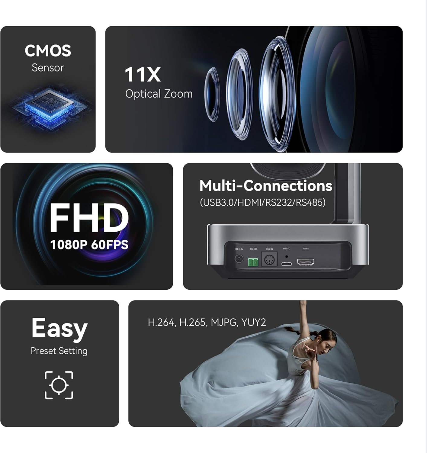 - ๐ใ๐ ๐๐ ๐๐๐๐๐ ๐๐๐ ๐๐ ๐๐๐ ๐๐จ๐ง๐๐๐ซ๐๐ง๐๐ ๐๐๐ฆ๐๐ซ๐ใCapture every detail and provide an immersive experience with Tenveo FHD 1080P 60FPS PTZ Conference Room Camera. With its 11X Optical Zoom, 1/2.8'' CMOS Sensor, 2.38 megapixel Lens, you can now capture stunningly detailed visuals that bring your virtual meetings or events to life. The wide-angle lens ensures that no participant is left out of the frame, while the 11X optical zoom allows for close-ups of key speakers and presenters.