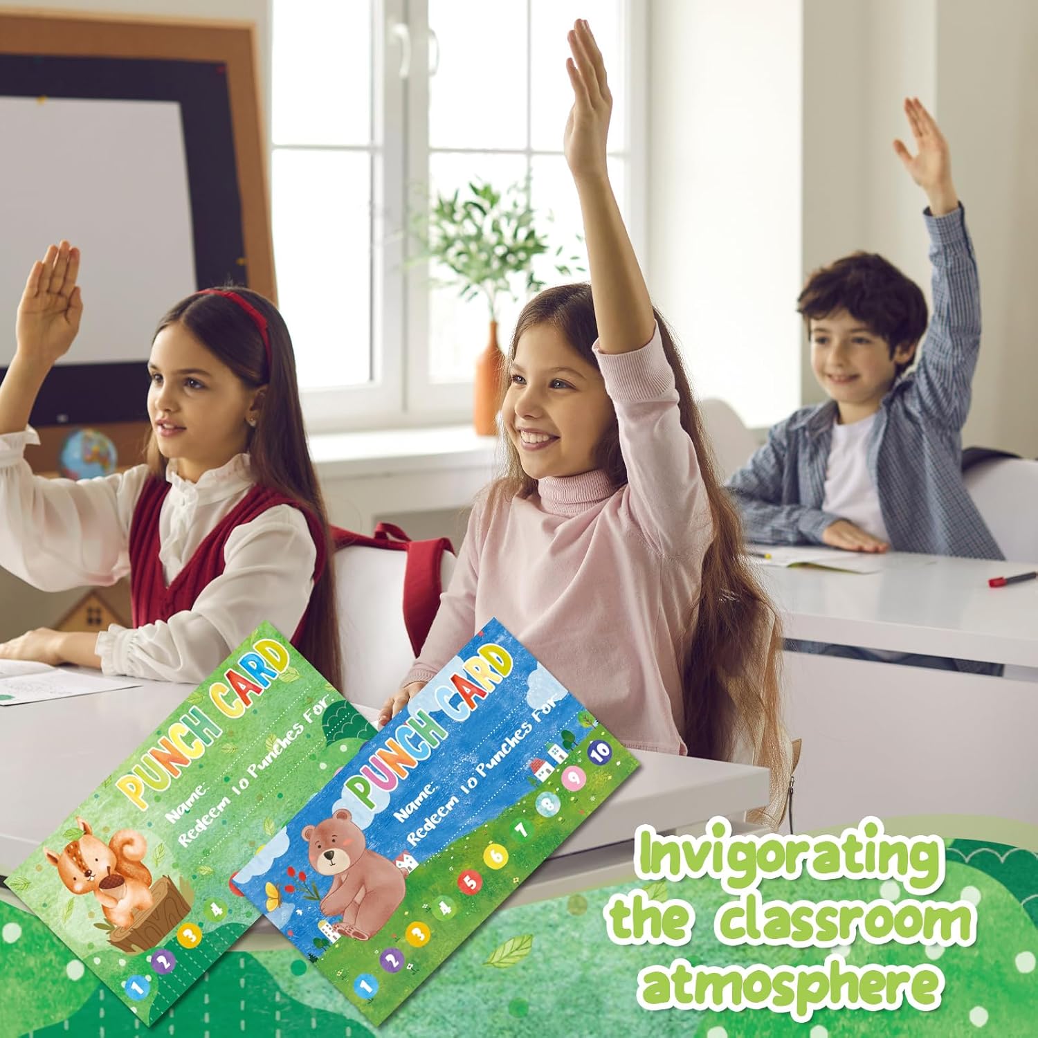 Fumete 400 Pcs Punch Cards for Classroom Reward Cards Behavior Incentive Loyalty Awards for Kids Students Teachers School Business, 8 Styles, 3.5 x 2 in(10 Cute Animal Punches Style)