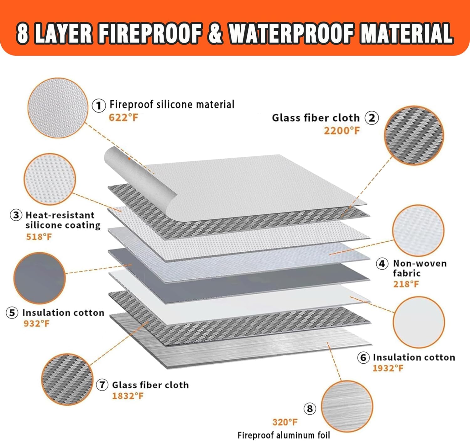 - 🔥【Fireproof and waterproof material】Wilmuz fireproof document bag is crafted using Outer layer of fireproof silicone, inner layer of fireproof aluminum foil use. These fireproof bag (Passed Global Flammability Standards (US labs) and Vertical Combustion Testing ( SGS UL94 V-1) certification Certification).It can withstand temperatures up to 5200℉,Plus,its water-repellent surface prevents water drops from seeping in.