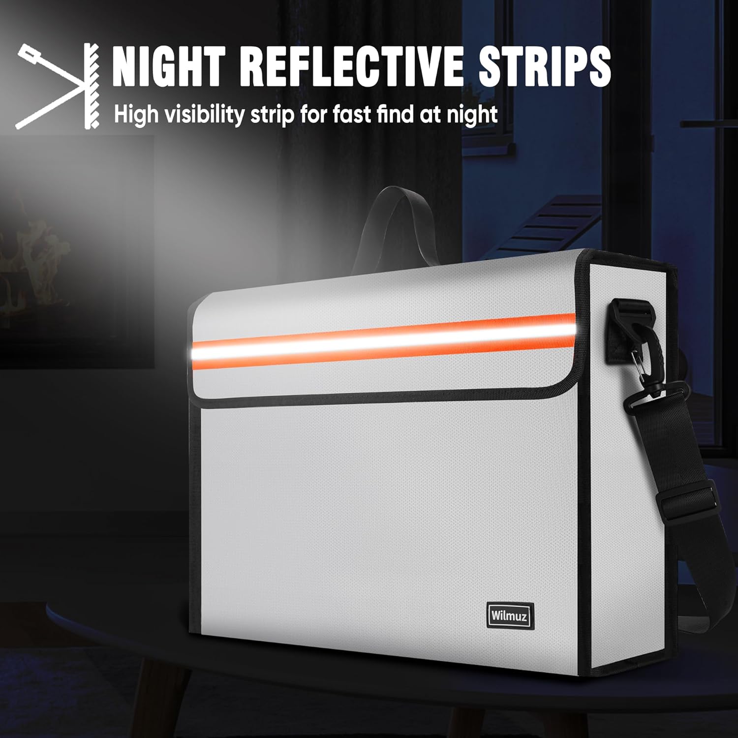 - ☔【unique design】 These document safe fireproof bags boast an attractive and sleek look with reflective tape for high visibility at night,It is easy to find the file bag in dimly lit places.also with double zipper opening-Easy Access,Wide Opening.File organizer with shoulder strap and handle design.