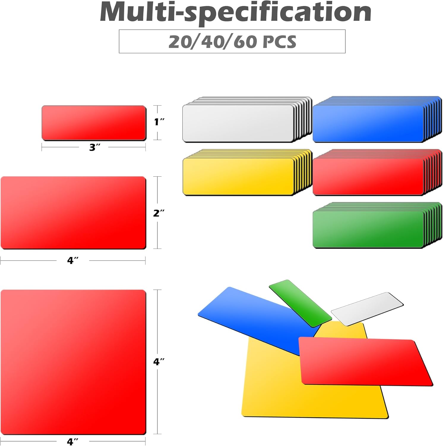 - MULTIPLE APPLICATIONS AND COLORS: Available in multiple colors, these labels offer a variety of organizing options. Whether you're using them to label items, leave reminders, or create an interactive learning experience, these magnets can be tailored to fit your needs. Perfect for organizing home spaces, classrooms, or workstations.