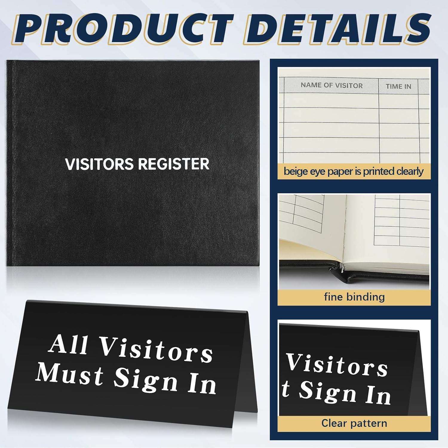 - Package Contents: including 1 visitor log book, 1 visitor tabletop sign and 1 pen, making the set ready for immediate use, which has everything you need to efficiently monitor your guest arrivals and departures