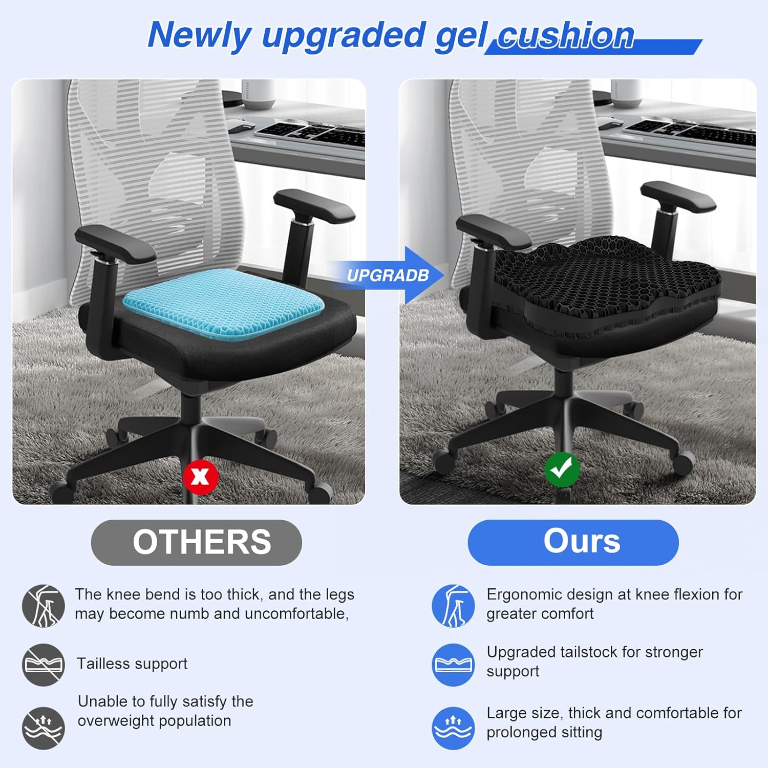 - Upgraded Size and Thickness: The 2024 Seat cushion features an upgraded size of 19.7 x 16.14 inches and 3.5 inches thick, also suitable for heavier users. It relieves hip and thigh pressure, easing tailbone and lower back pain, and enhancing comfort